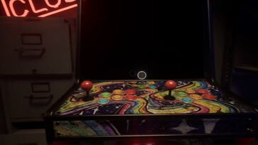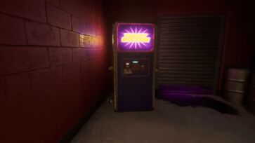 Внутри вы найдёте в углу автомат для приёма билетов. Взаимодействуйте с ним, чтобы вставить собранные ранее билеты. Это откроет ближайшую дверь, предоставив доступ к большой аркадной зоне. Продвиньтесь вперёд в темноту, чтобы запустить концовку.