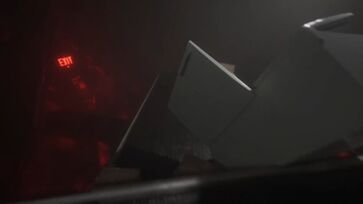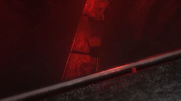 Внутри комнаты «Утилизации» активируйте переключатель на стене, затем встаньте на красную точку возле ограждения впереди. Оставайтесь там, пока не начнётся следующая последовательность событий.