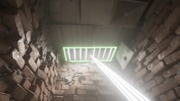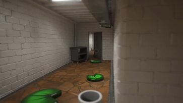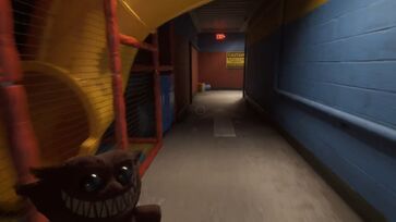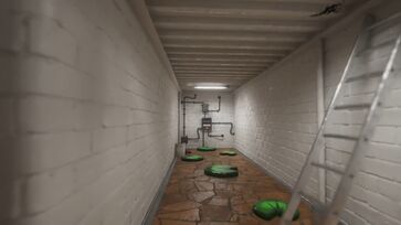 После выхода из петли вы скатитесь вниз и увидите прямо перед собой знак «Выход». Продолжайте двигаться вперёд через вентиляцию, пройдите через решётчатую дверь и спрыгните в синее отверстие игрового комплекса. Оттуда идите прямо, следуя по пути через дополнительные вентиляционные шахты, пока не вернётесь в «Подвал».