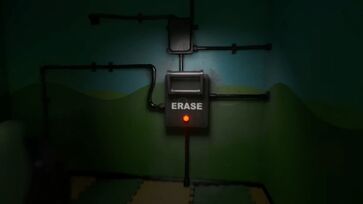 Пройдите через этот проём, затем поверните налево, чтобы найти ещё один переключатель «Стереть». Активируйте его и выйдите через ту же дверь.
