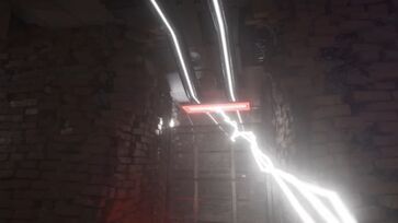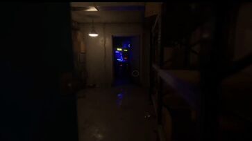 Начните с того, что войдите в левую дверь и активируйте переключатель внутри комнаты с мониторами. Затем вернитесь в главную комнату и идите к правой двери. Чтобы открыть её, удерживайте E и продолжайте пытаться заполнить круговой индикатор прогресса. Это будет безуспешно несколько раз, так что продолжайте попытки, пока дверь наконец не откроется. Войдите внутрь и активируйте второй переключатель.