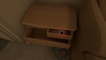 Откройте шкаф слева и загляните в открытый ящик, чтобы забрать предмет.