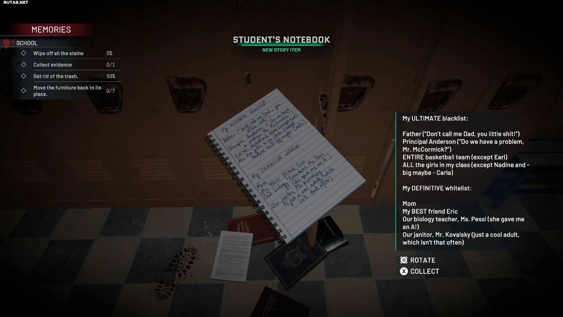 В первом воспоминании второго акта «Вещи, оставленные позади» в игре Crime Scene Cleaner кассета (CD) находится на столе в квартире Ковальского. Это происходит во время воспоминания о 16-летии Елены, то есть при первом посещении квартиры. Второй раз вы попадете туда уже в сцене отъезда Елены.