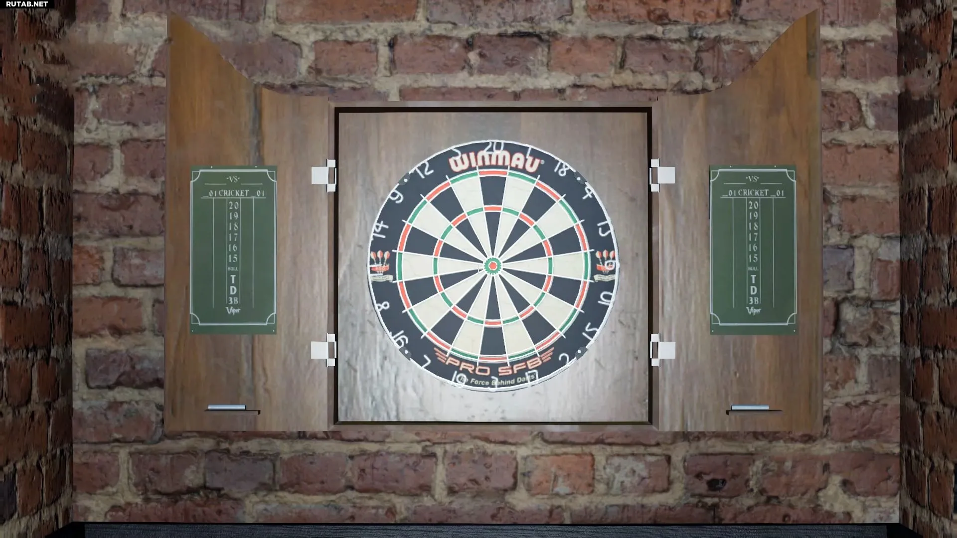 За большим неоновым указателем вы найдёте доску для игры в дартс.
