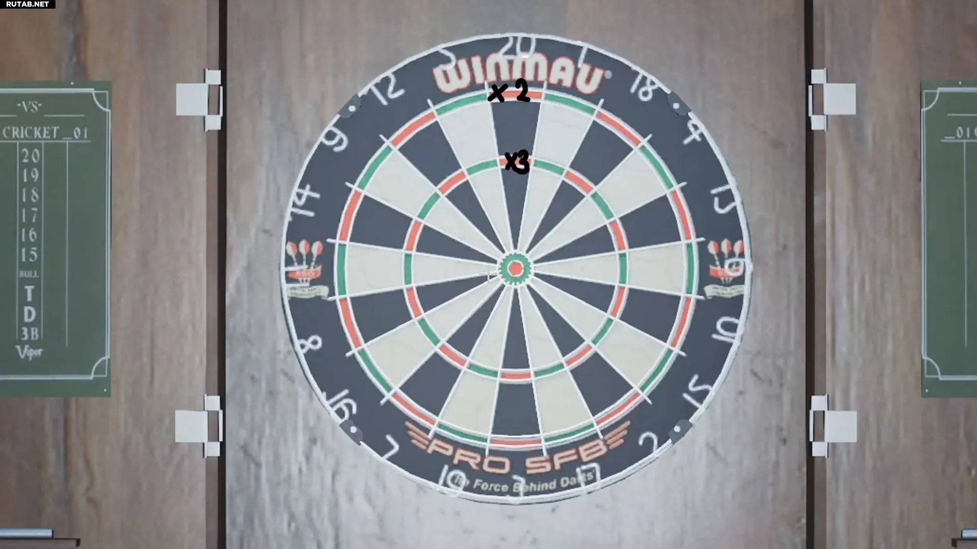На мишени есть внешнее и внутреннее кольца. Внутреннее кольцо утраивает значение сектора, а внешнее — удваивает.