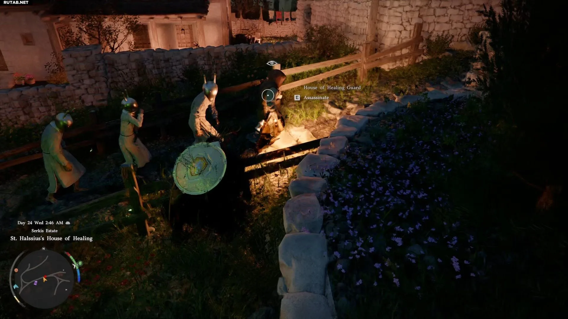 Самый простой способ выполнить это испытание — устранить стражников на фермах к западу от замка Рыцаря Пламени, на окраине Деменисса, под покровом ночи.