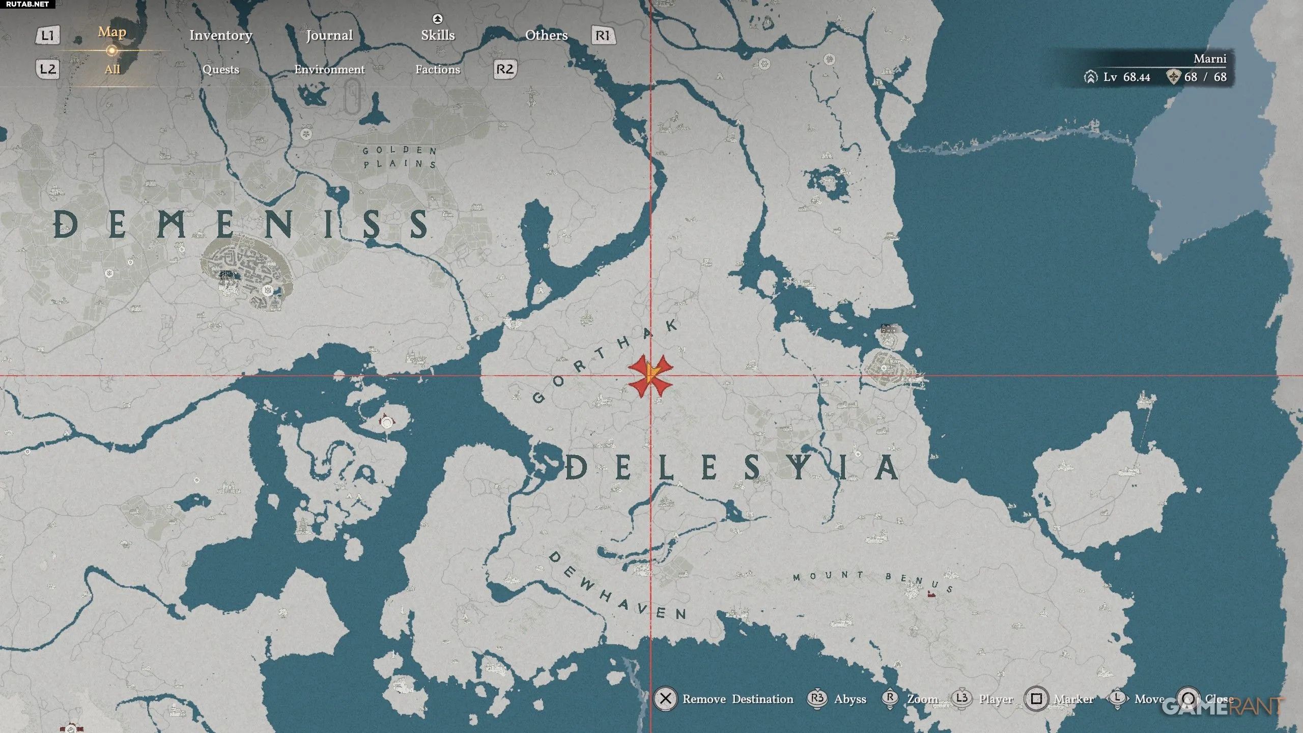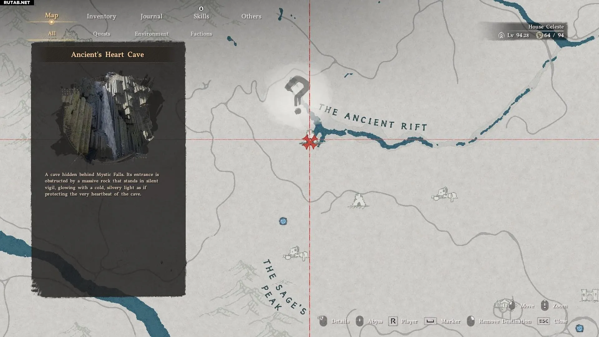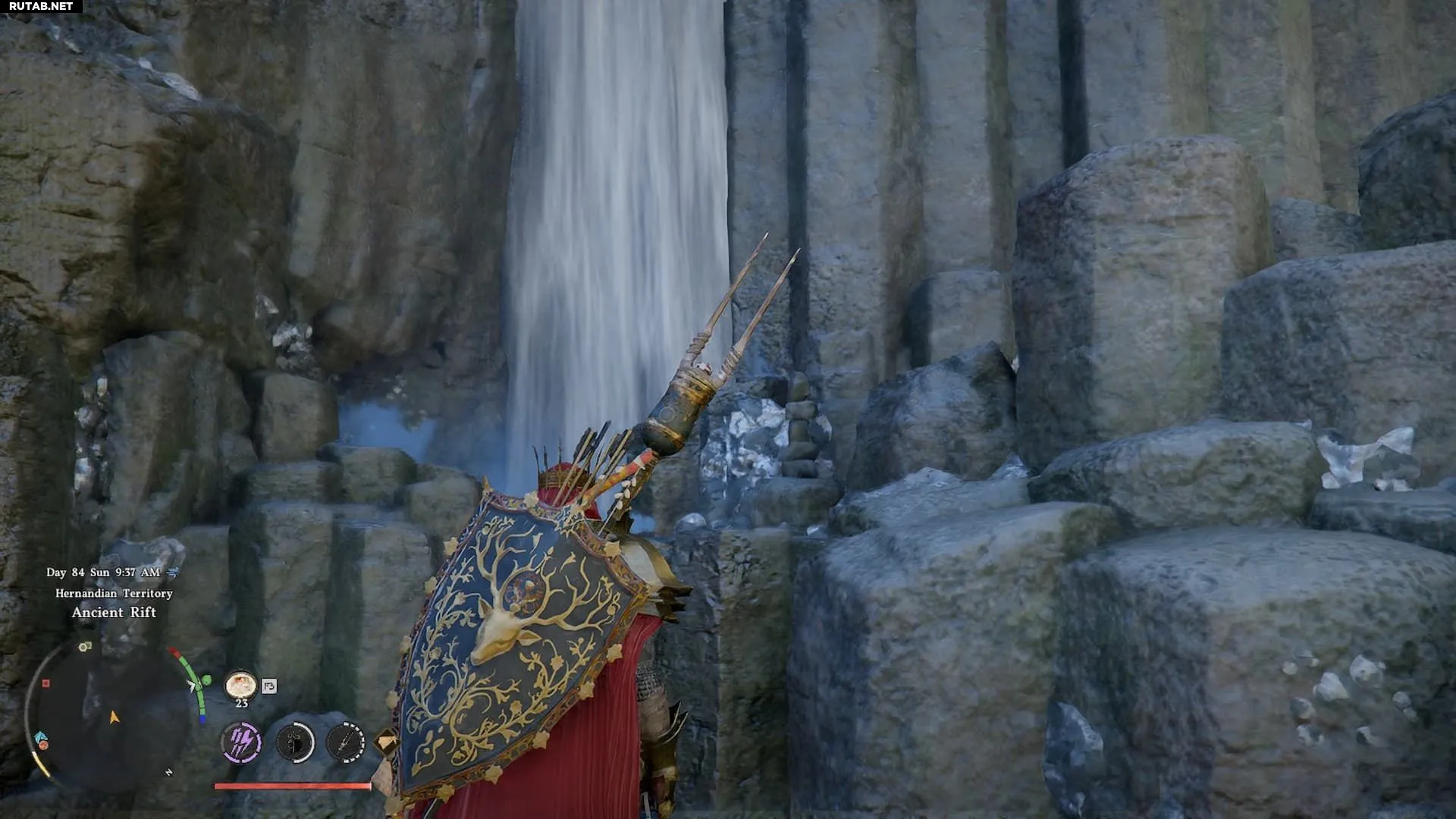 Эти ботинки можно найти, отправившись в Древний разлом и пробившись сквозь водопад, отмеченный на карте выше (Древний разлом находится прямо к северу от Эрнанда и ниже буквы «А» на Пайлуне). Вы поймёте, что нашли нужный водопад, если рядом увидите небольшую пирамидку из сложенных камней.