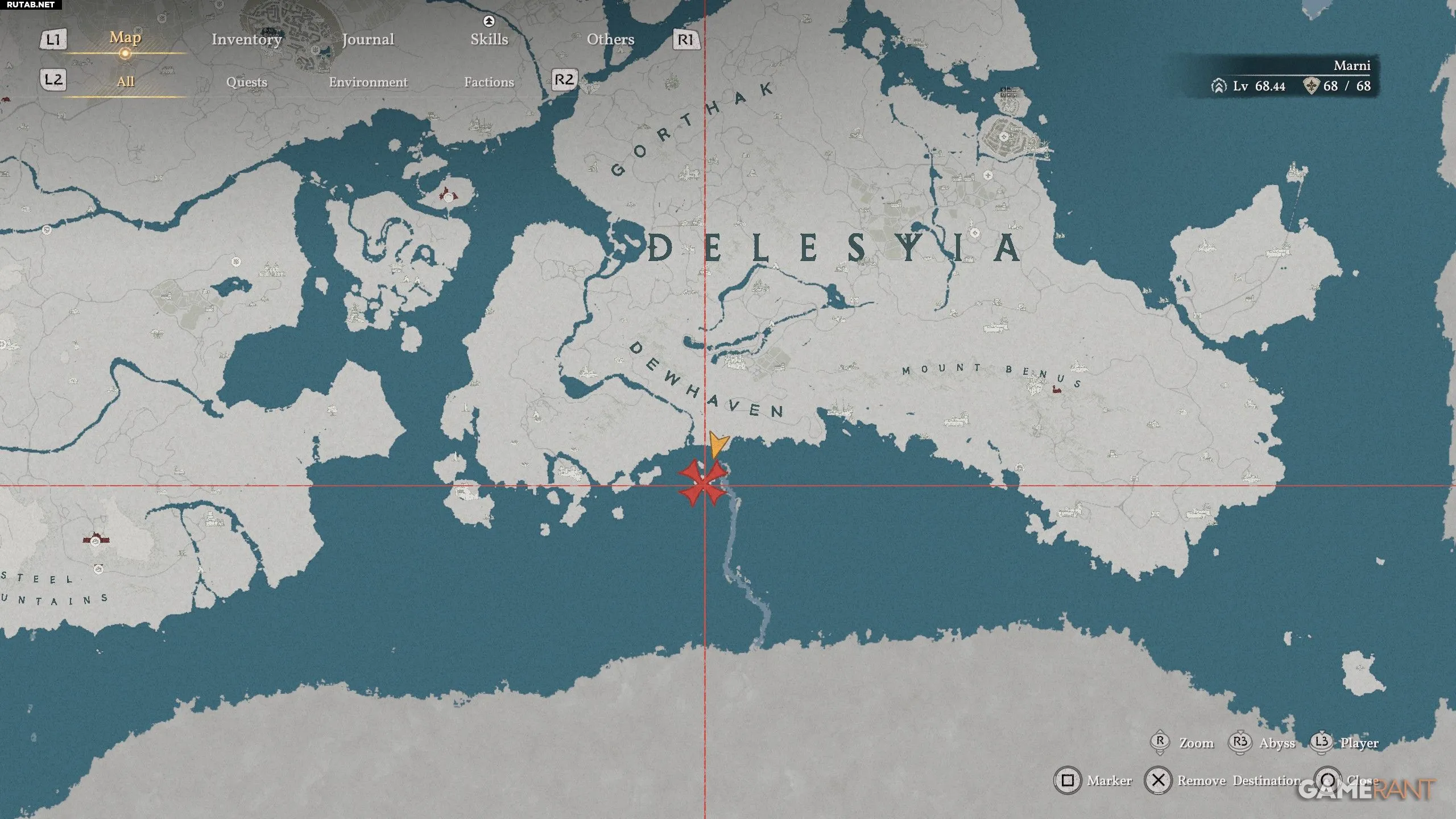 - Добравшись до Делесии, направляйтесь к самой южной точке первого «E» на карте.