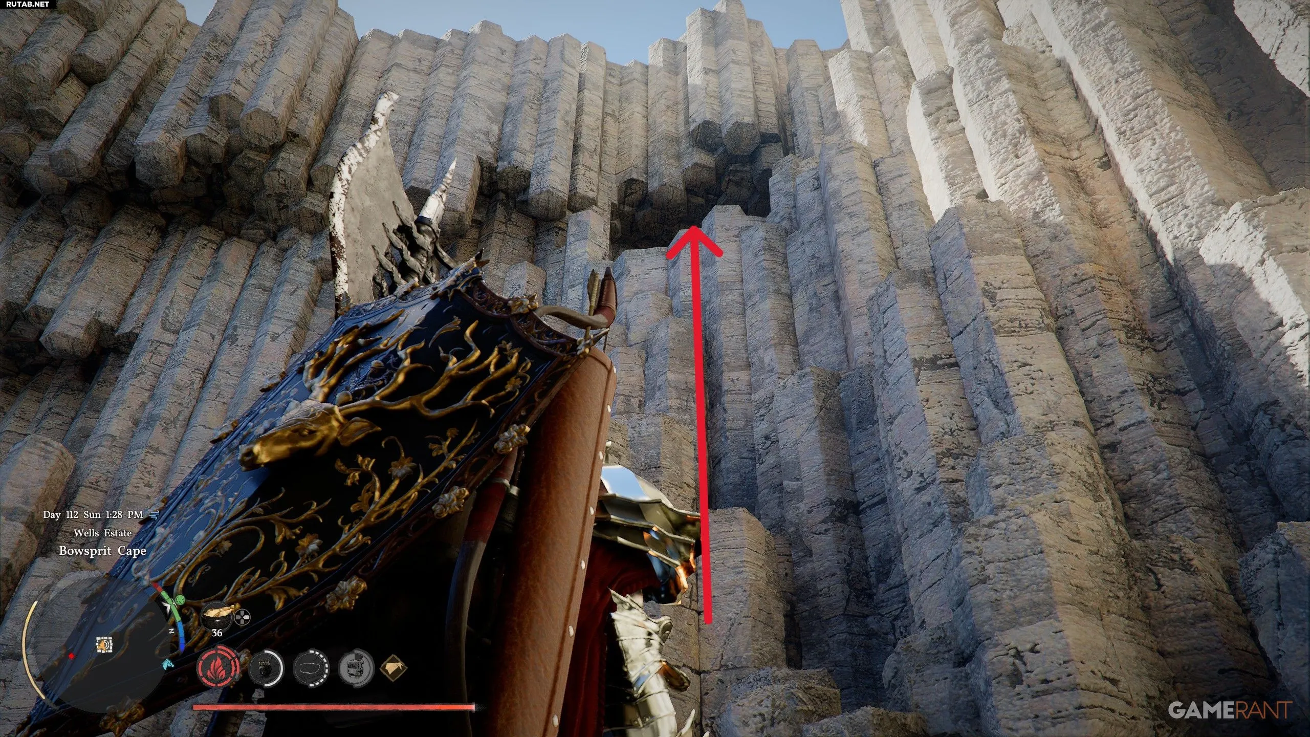 - От Следа Бездны повернитесь на запад и посмотрите вверх, где можно начать забираться по скальным образованиям, чтобы попасть в небольшую пещеру.