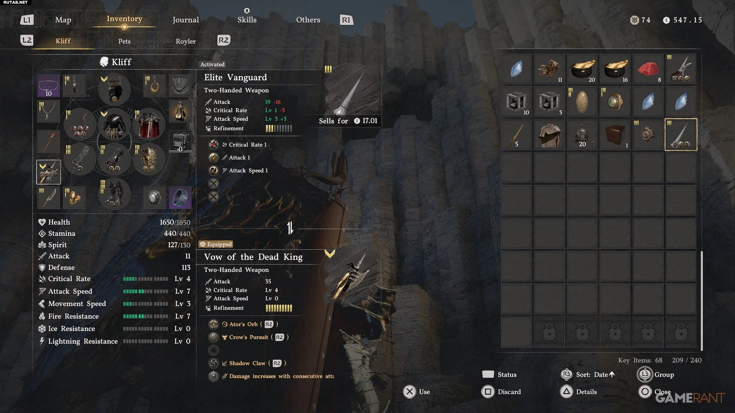 - «Элитный авангард» можно дополнительно улучшать, что увеличит показатели атаки и скорости атаки. Так что если вы ищете наносящее большой урон и быстрое оружие, то «Элитный авангард» — вполне достойный вариант.