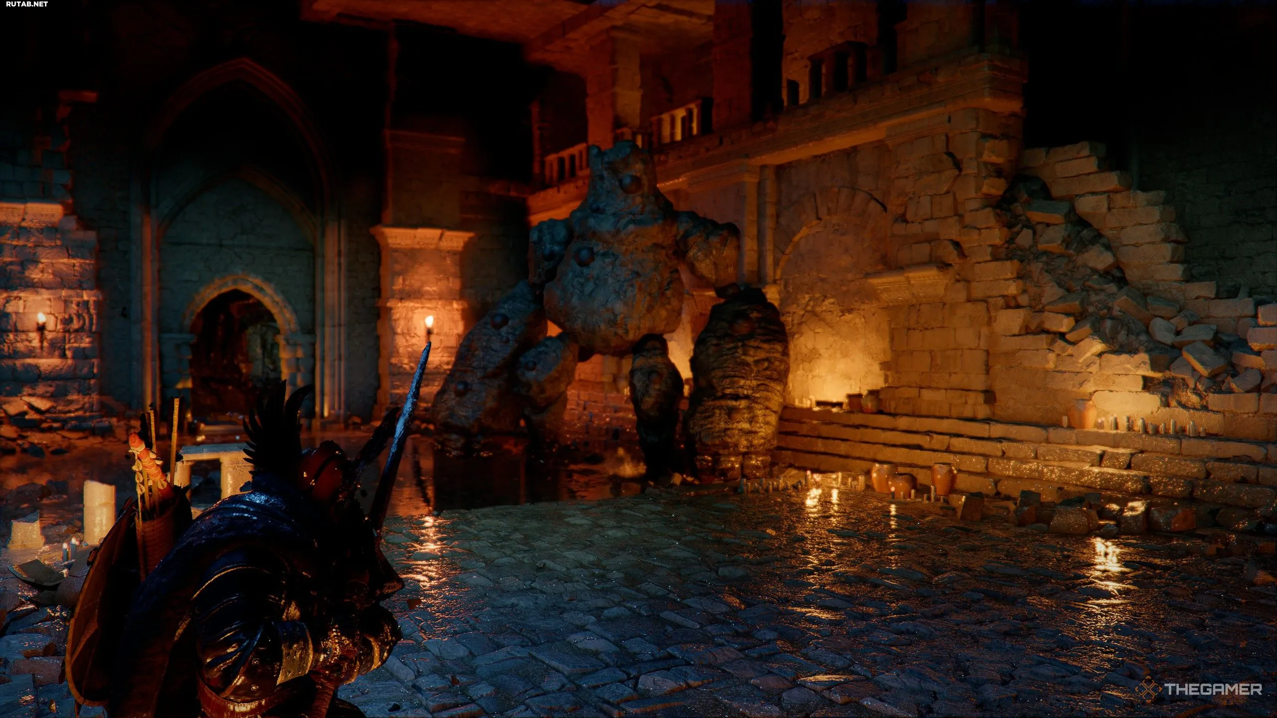 Внутри комнаты несколько валунов сформируют босса по имени Могильный скиталец. Не позволяйте его размеру вас напугать — с этим противником довольно просто справиться.