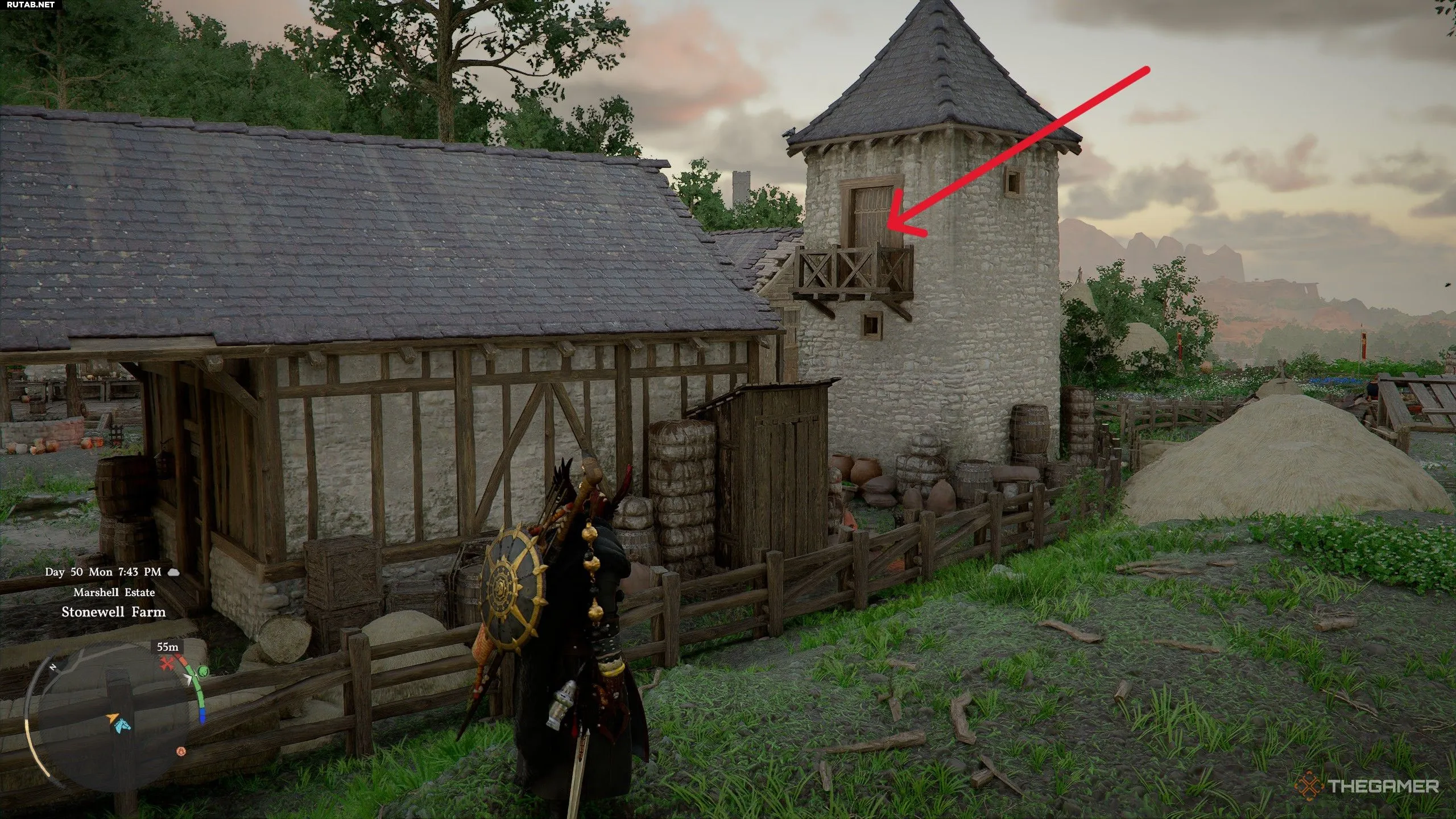 От места, где вы нашли сапоги, направляйтесь на северо-восток к небольшой группе зданий под названием Ферма «Каменный колодец». Найдите небольшое строение с коротким балконом перед деревянной дверью. Заберитесь на балкон и пройдите через дверь. Подходите к сундуку, прижимаясь к левой или правой стене, так как в полу есть ловушка-люк, которая сбросит вас в нижнюю часть здания.