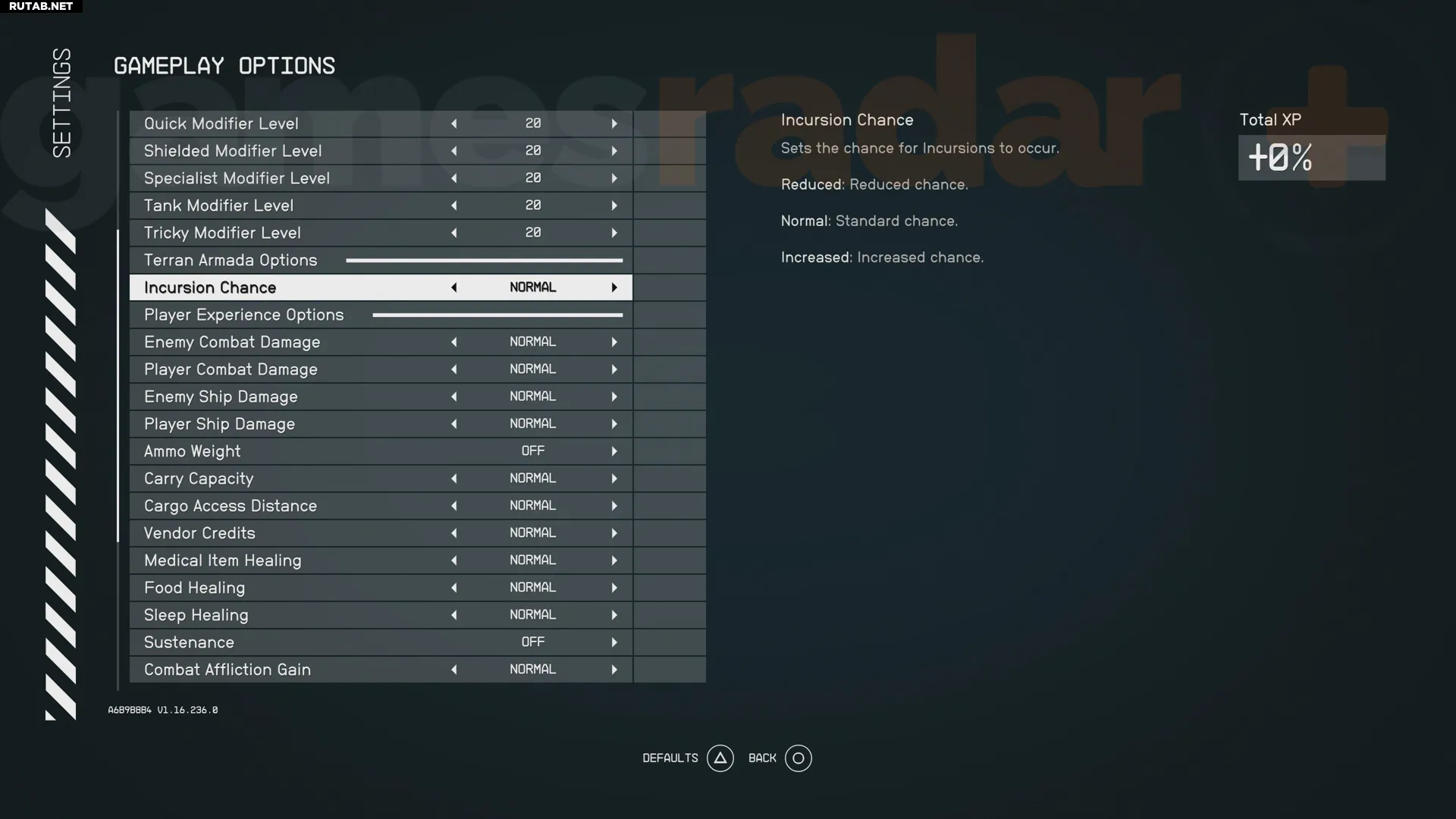 Если вы хотите увеличить шансы столкнуться с Вторжениями Терранской Армады или, наоборот, максимально их избегать, в игре есть новая настройка. Она находится в меню «Настройки» -> «Игровой процесс». Прокрутите вниз до раздела «Параметры Терранской Армады», чтобы найти настройку «Вероятность вторжения». Её можно установить на «Пониженная», «Обычная» или «Повышенная». Стоит отметить, что при выборе «Повышенной» вероятности бонус к опыту не начисляется, а выбор «Пониженной» приведёт к штрафу в -4% к получаемому опыту, что незначительно замедлит ваш прогресс.