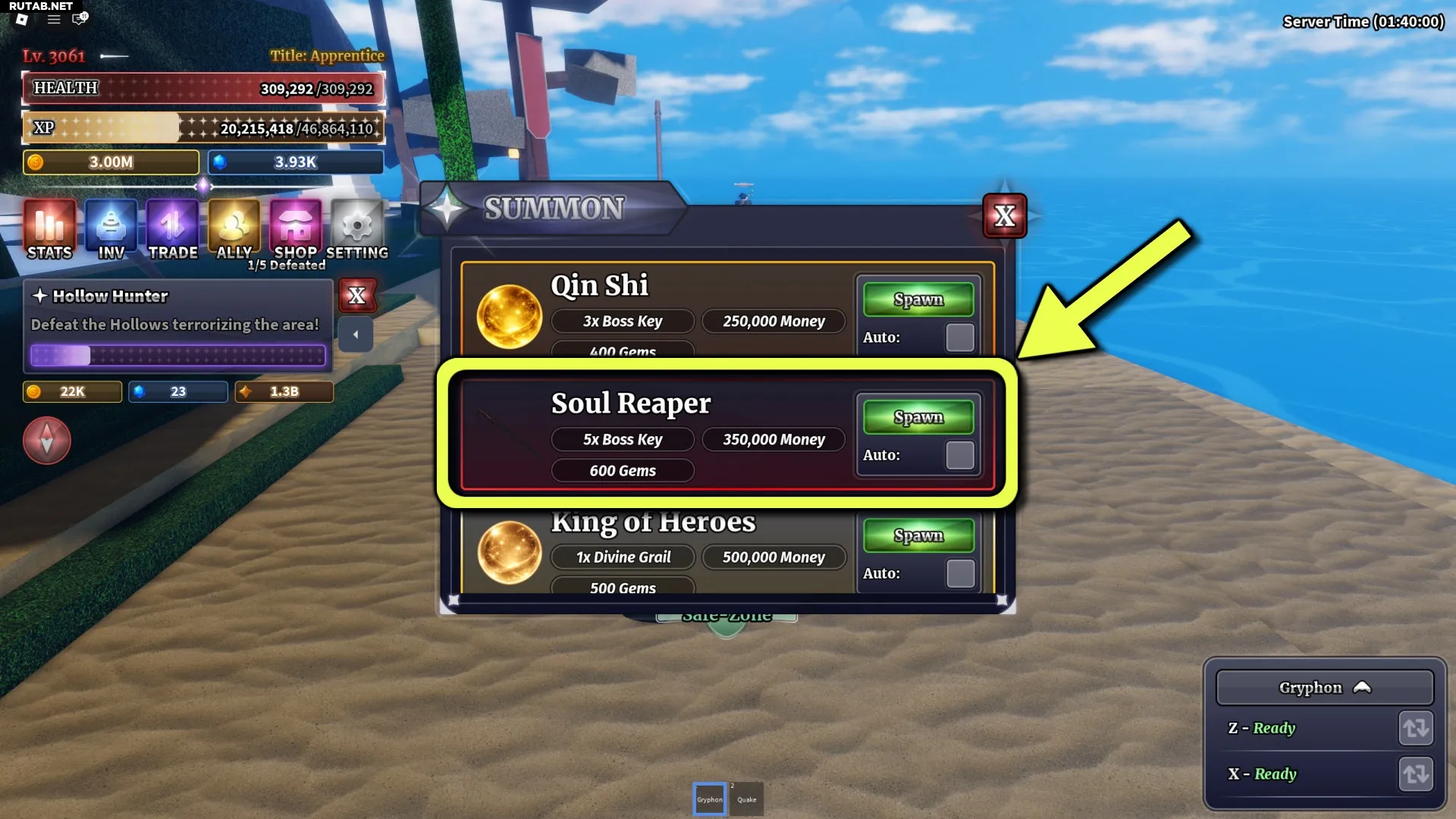 После каждого побежденного босса вы также получаете Билеты босса. Их можно обменять у NPC Обменника боссов (он находится неподалеку от Призывателя). За 500 Билетов босса он сразу отдаст вам меч «Пожинатель душ», без сбора остальных ресурсов. Этот вариант хорош, если вы хотите иметь четкую цель и избежать конкуренции с другими игроками за добычу с босса.