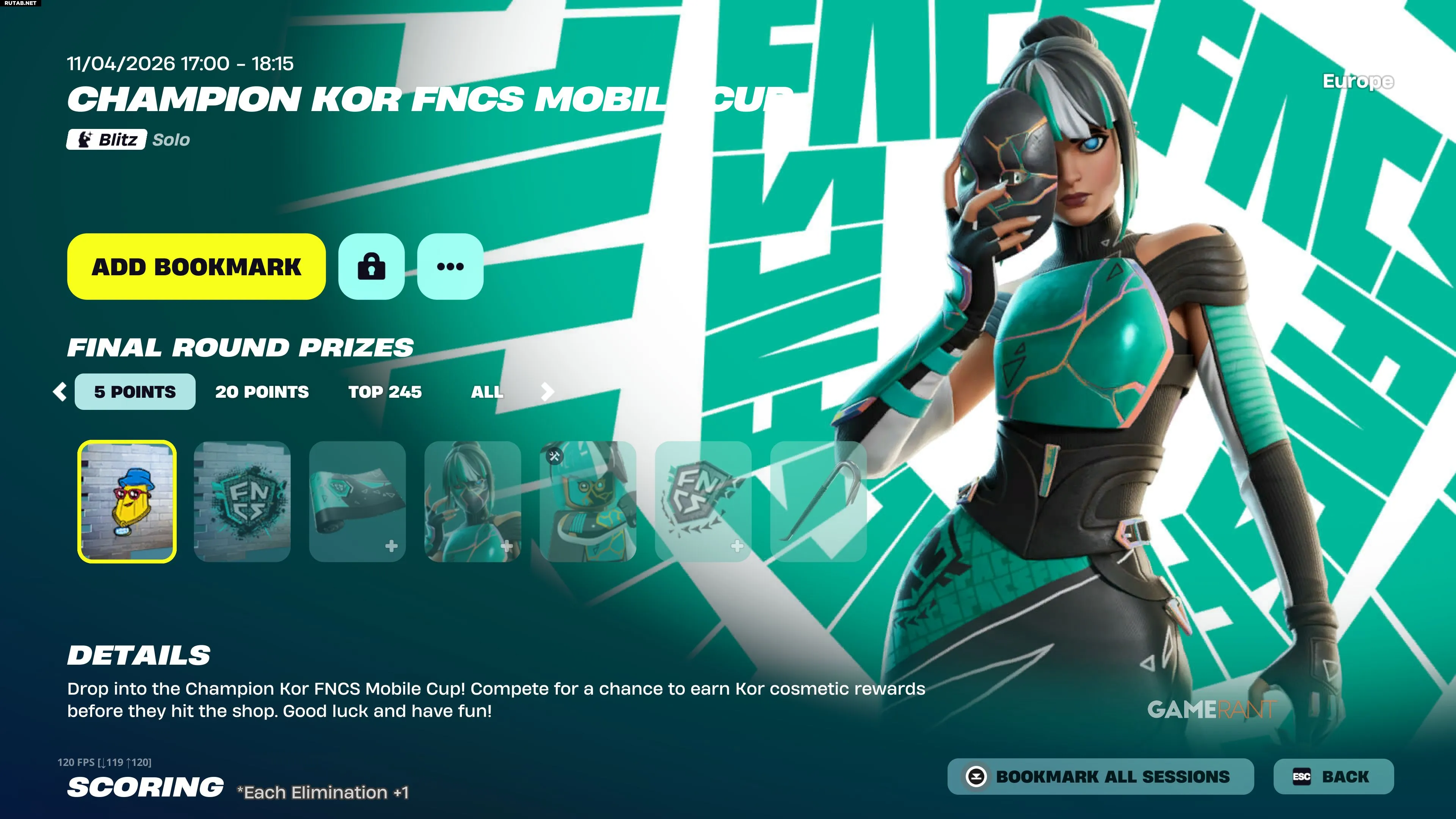 Мобильный кубок FNCS «Чемпион Кор» (Blitz Solo): время начала и награды