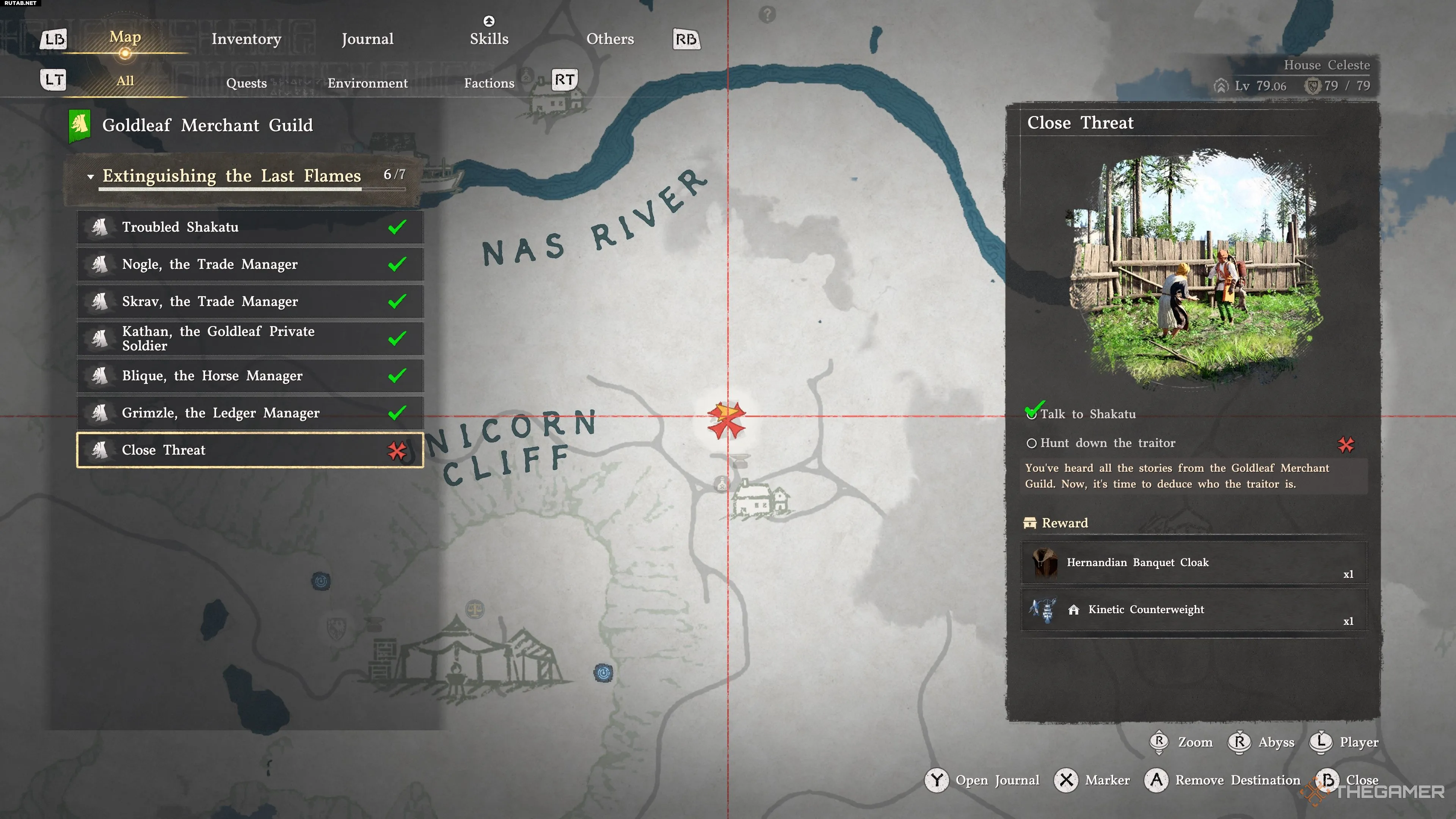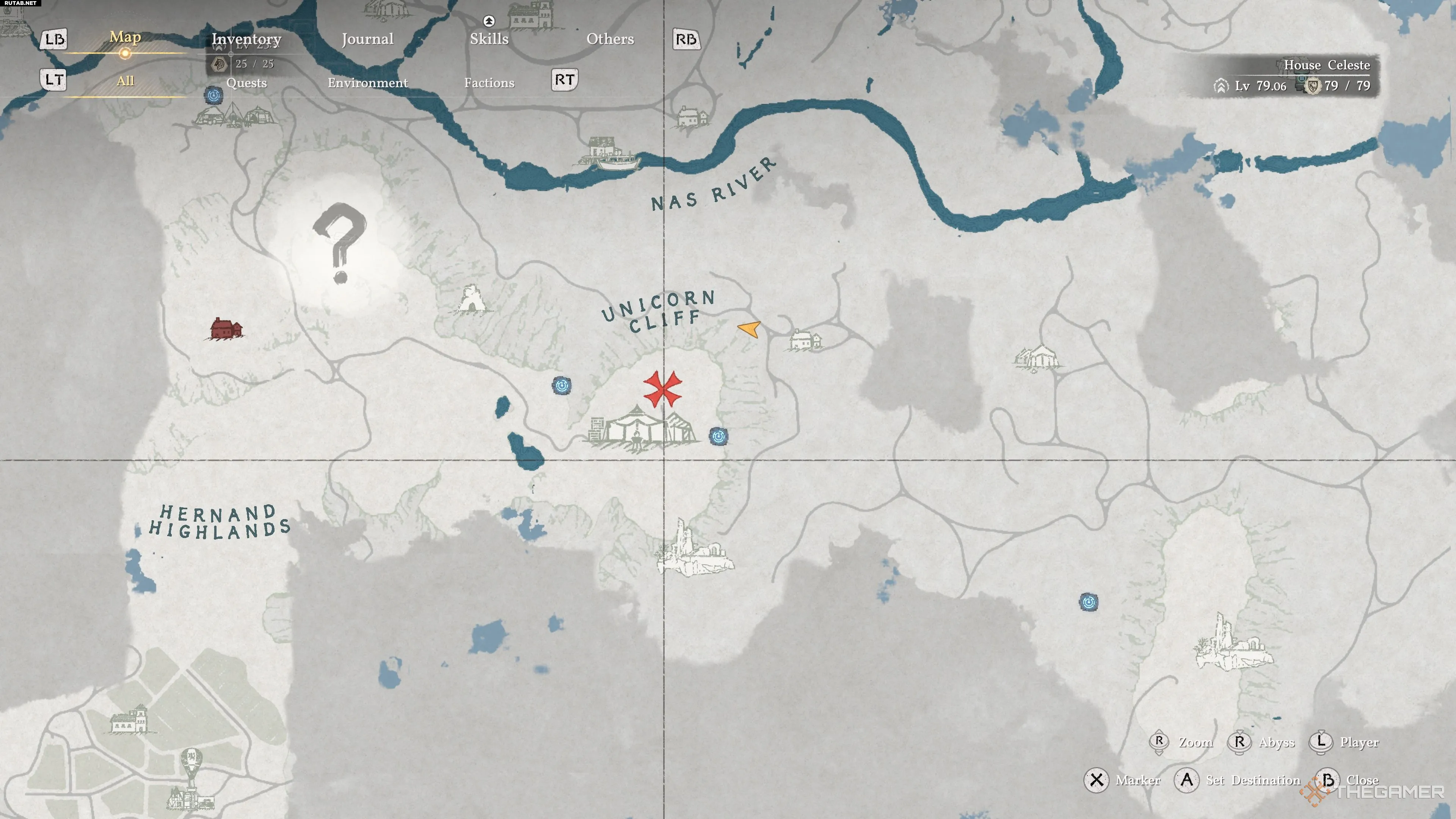 Отправляйтесь из лагеря гильдии на северо-восток, к небольшому стойбищу к востоку от Утёса Единорога и юго-востоку от реки Нас.