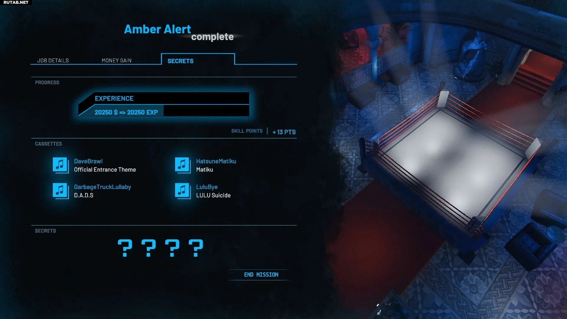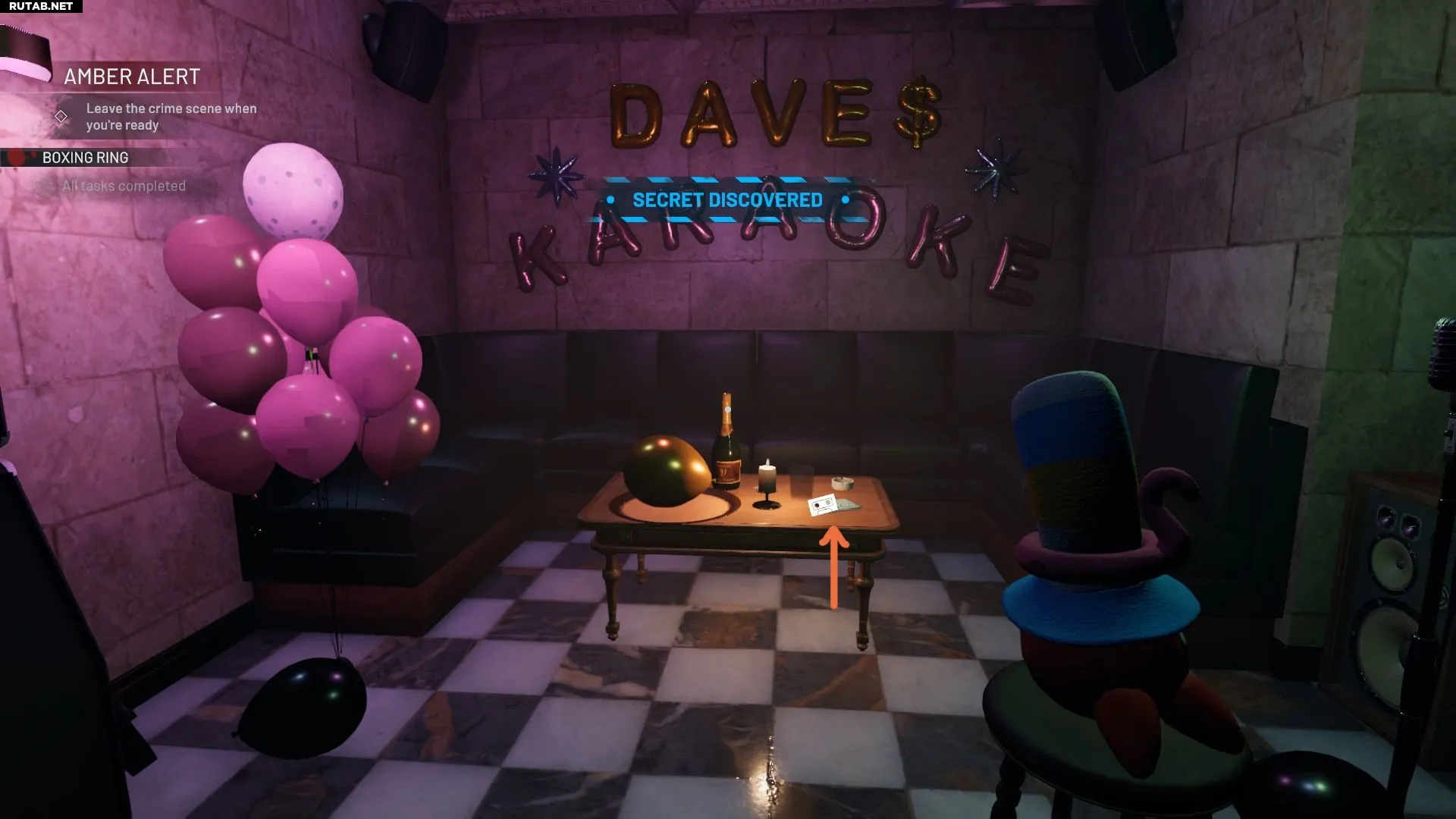В локации «Amber Alert» второго акта Crime Scene Cleaner спрятаны четыре секрета и четыре кассеты (CD). Три из них — пары «секрет + кассета» — находятся в комнате с бочками, кошачьей комнате и караоке-комнате. Четвертый секрет, «Логово Дэйва», кассеты не содержит, а последняя, четвертая кассета, не спрятана и лежит на виду. Вот подробное руководство по их поиску.
