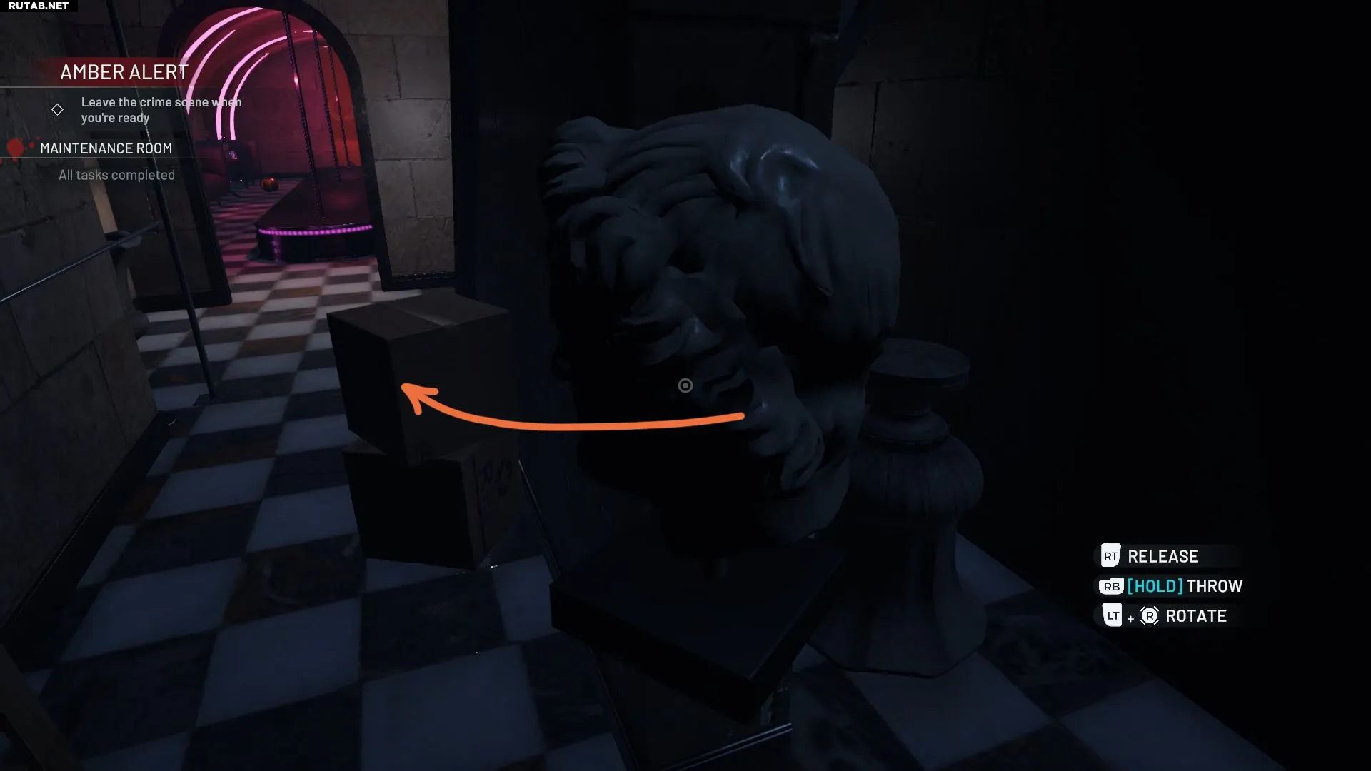 После уборки в служебной зоне, у входа в барную зону вы найдете кран. Рядом с ним стоит желтый знак «Мокрый пол» — отбросьте его вместе с другим хламом, преграждающим путь. За ним вы обнаружите лифт, ведущий вниз.