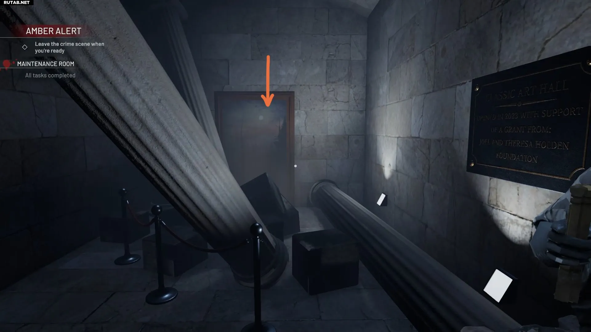 Четвертый секрет также находится в зоне технического помещения. Найдите угол с обломками колонн и табличкой «Классический зал искусств». На стене висит фальшивая картина, сквозь которую можно пройти.