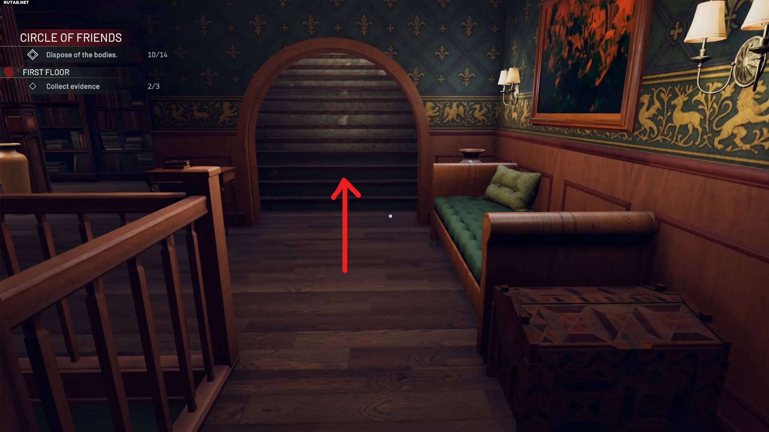 Вернитесь обратно в гараж через окно и пройдите в конец коридора. Проигнорируйте кухню слева и войдите в дверь справа. Вы окажетесь в особняке Холдена. Поднимитесь по лестнице слева, чтобы попасть на второй этаж (в игре он обозначен как «Первый этаж»).