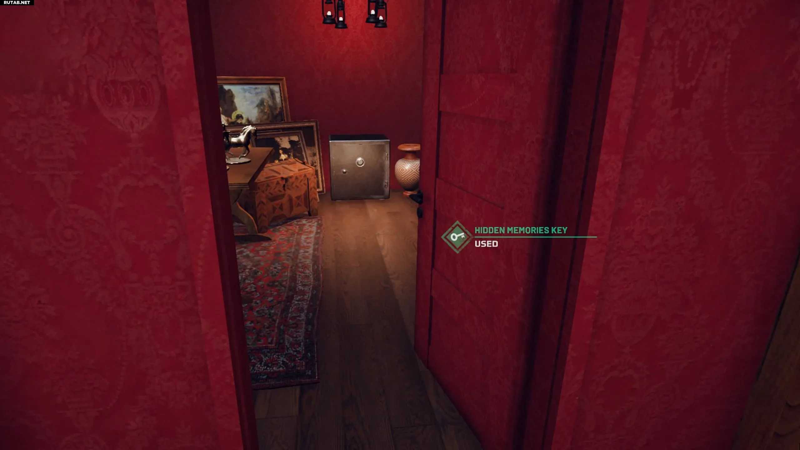 Поднимитесь по лестнице, подойдите к красной запертой двери и используйте на ней ключ «Скрытые воспоминания».