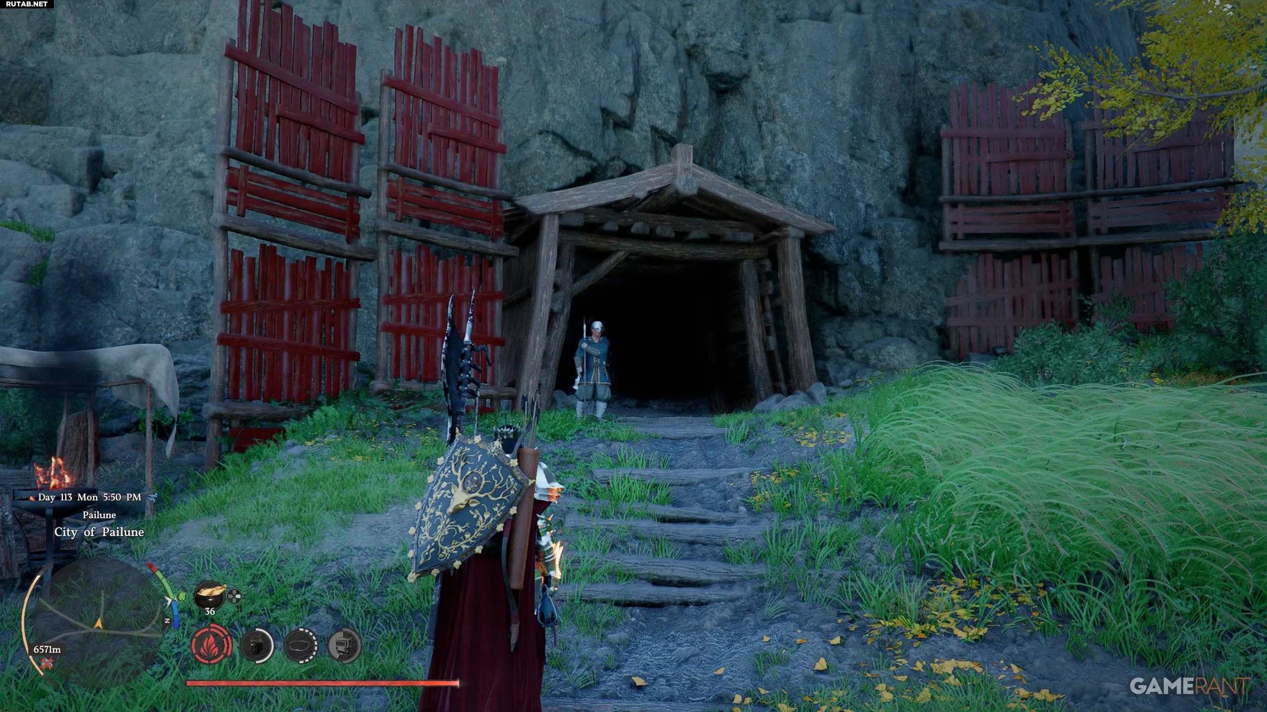 - Рядом с белой палаткой на севере посмотрите на запад, чтобы найти вход в шахту.
