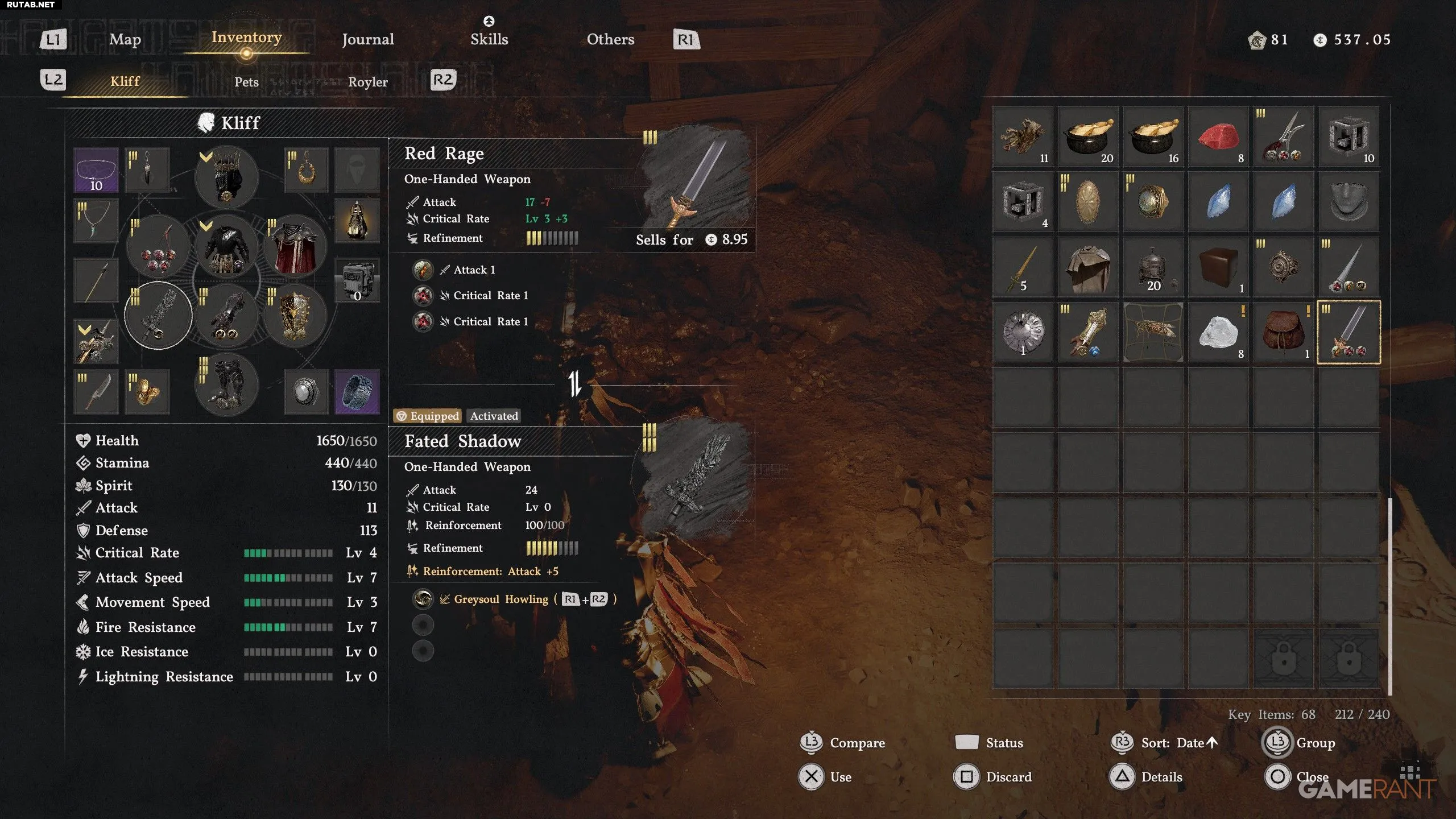 В полностью улучшенном состоянии «Красная ярость» имеет атаку 31 и шанс критического попадания 4-го уровня. В сочетании с дополнительным Снаряжением Бездны, повышающим шанс крита, вы получите одноручное оружие, которое постоянно наносит двойной урон.