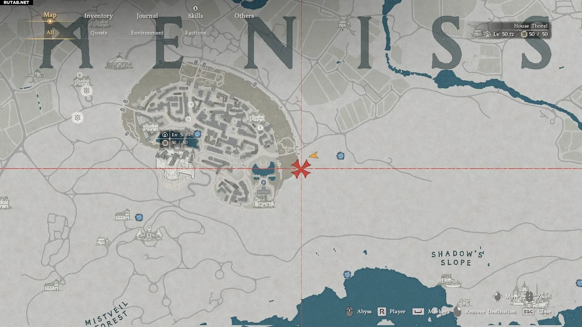Найдите Сияние Бездны у торговца в месте, отмеченном на карте выше. Нужно добраться до юго-восточного края города Деменисс, где у скал рядом с изгибом стены стоит Подпольный магазин. Если идти с востока, торговец будет слева от городских ворот (см. карту для ориентира — рядом находится След Бездны).