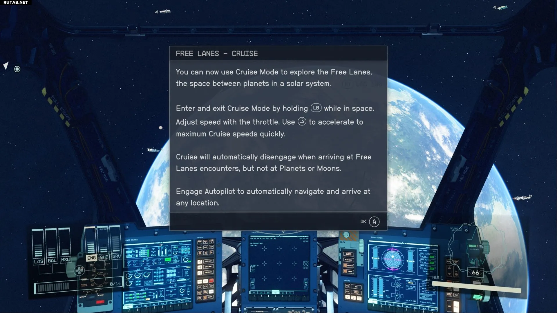 Режим круиза недоступен с самого начала игры. Вы не найдете эту опцию, когда впервые сядете за штурвал «Фронтира» после разговора с Барреттом.
