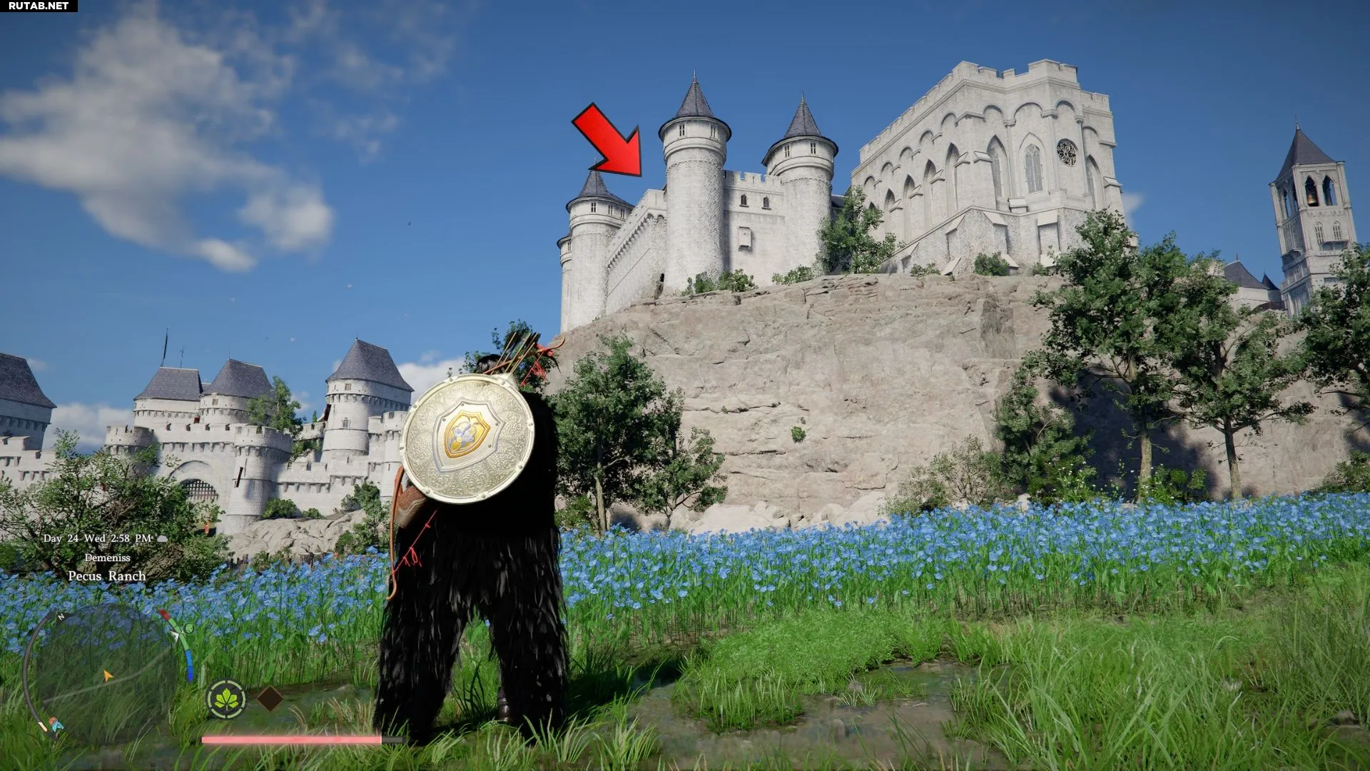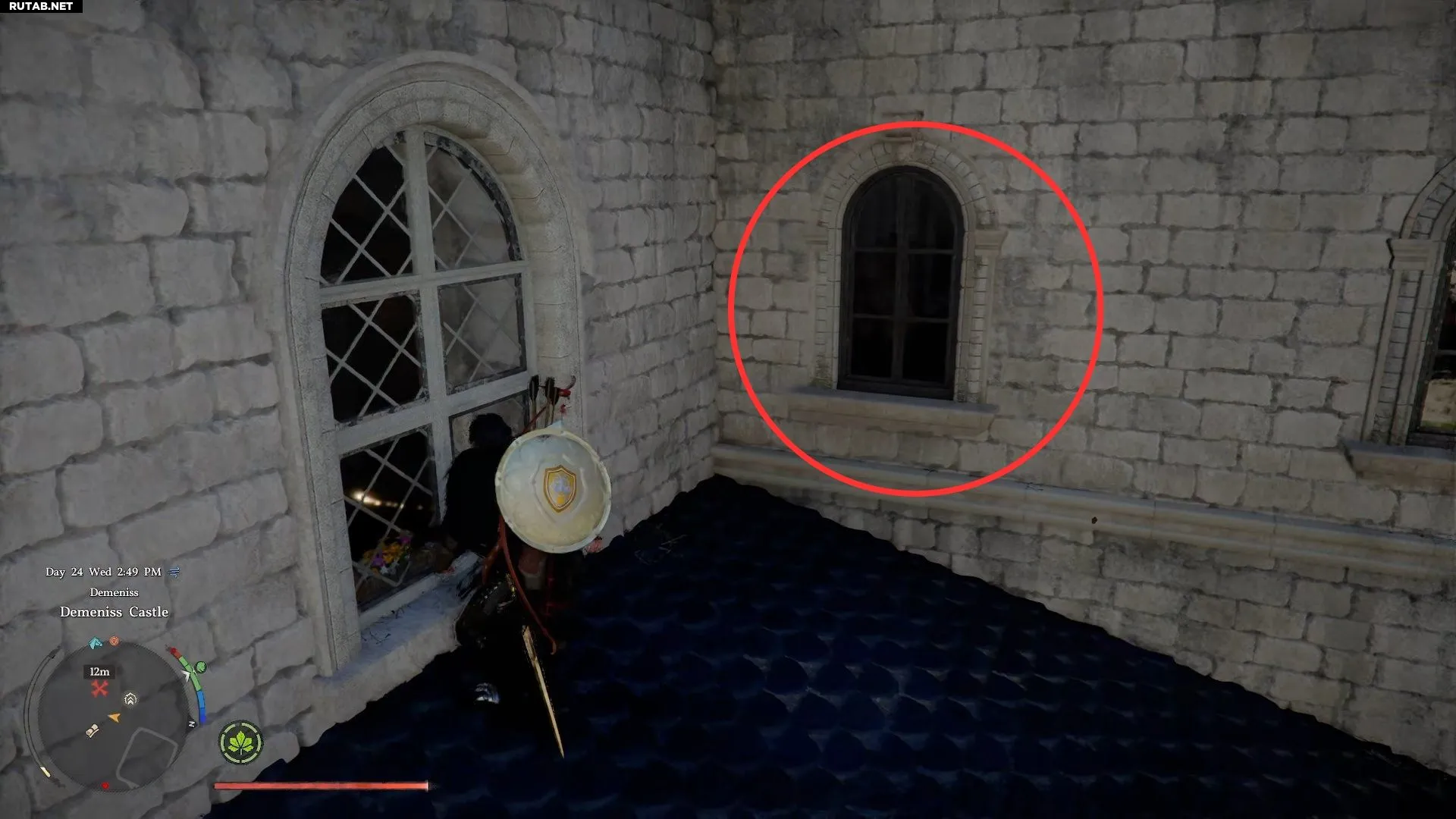 - Двигайтесь на север к замку Деменисс и взберитесь по отвесной горной стене, чтобы достичь укреплений замка.