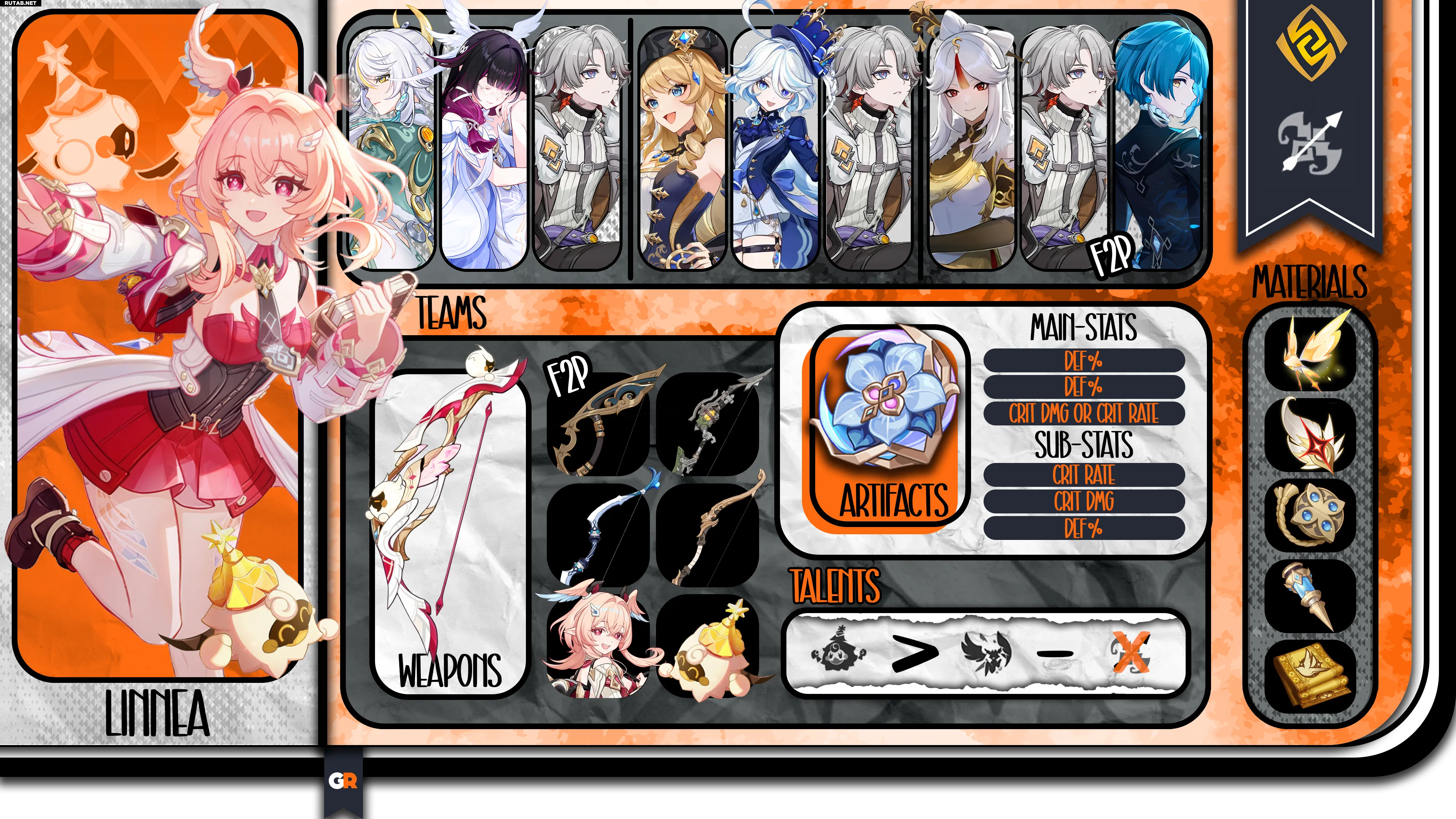Наиболее важным талантом Линнеи является её элементальный навык, за которым следует её элементальный взрыв. Вот что нужно для прокачки: