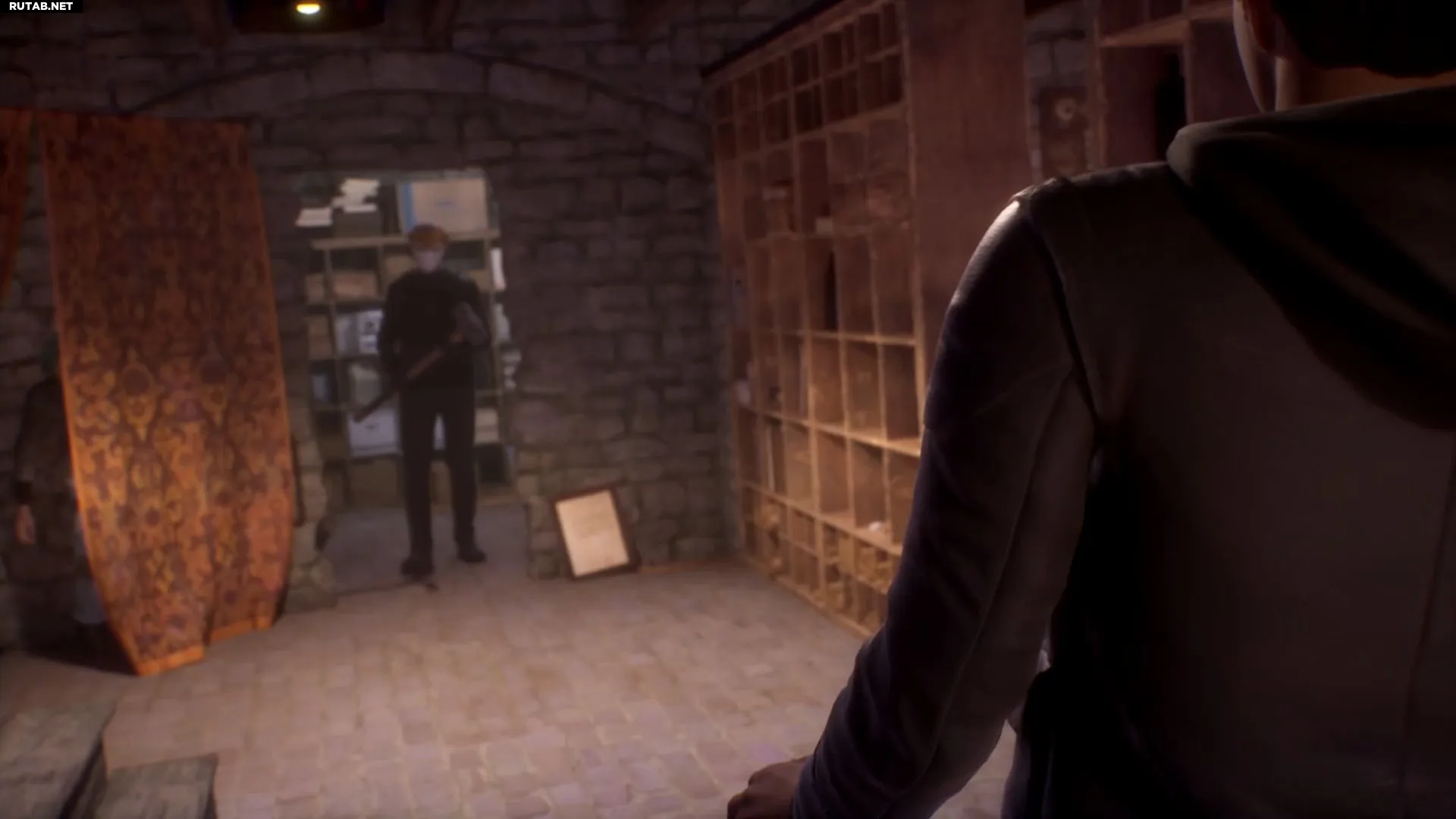 В этом сценарии мужчина выронит улику «Чертежи», которую можно будет подобрать.