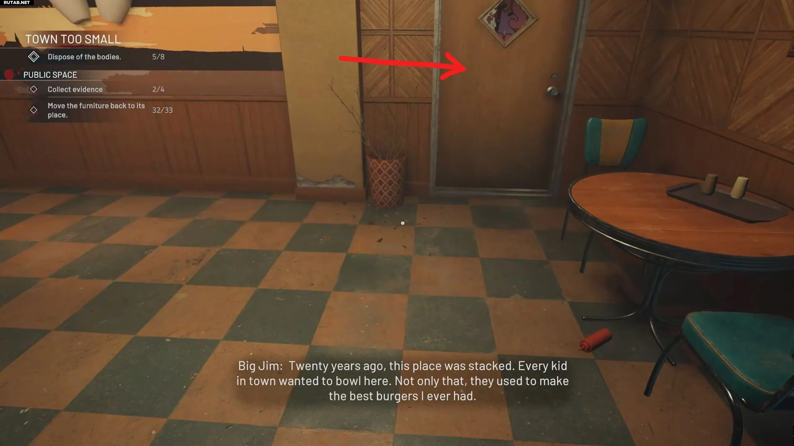 В финальной главе второго акта «Crime Scene Cleaner», где завершается история Ковальского, находится локация Town Too Small. В этом баре и ресторане можно найти четыре аудиодиска и два секретных помещения.