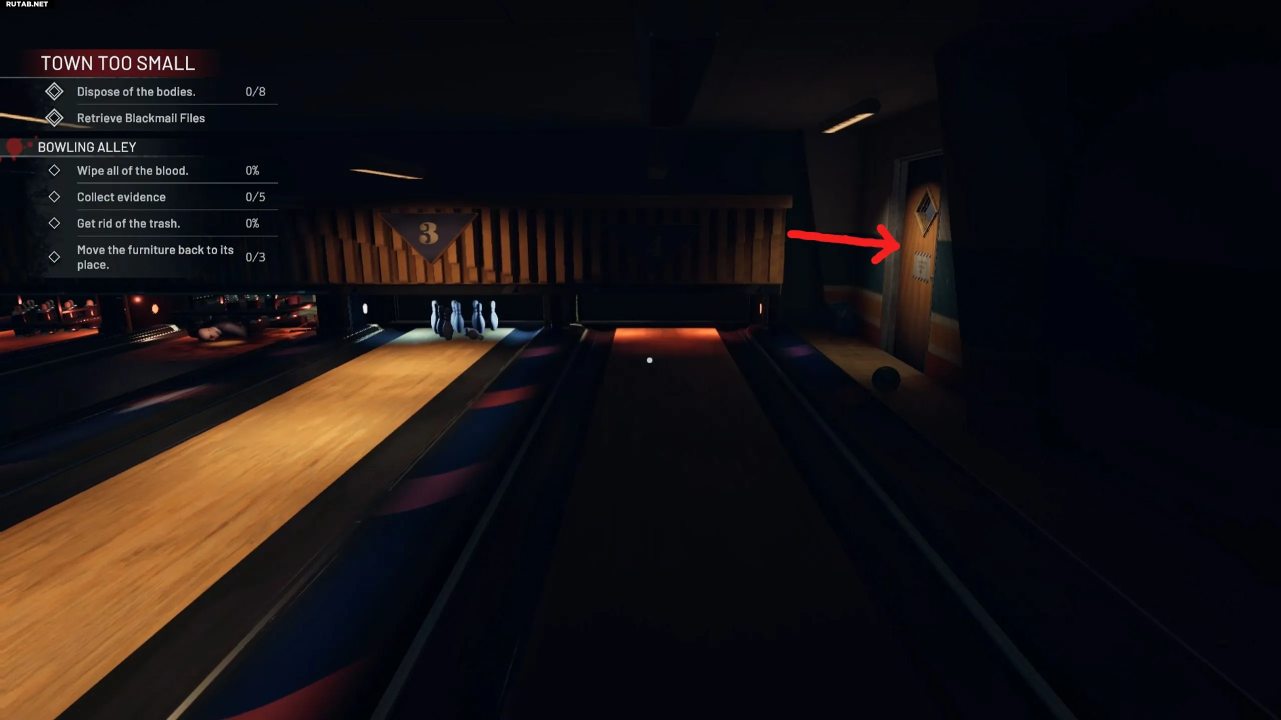 Пройдите внутрь, чтобы оказаться за дорожками для боулинга. На столе лежит дверная ручка, которую нужно взять. Там же можно найти лотерейный билет, который можно продать.