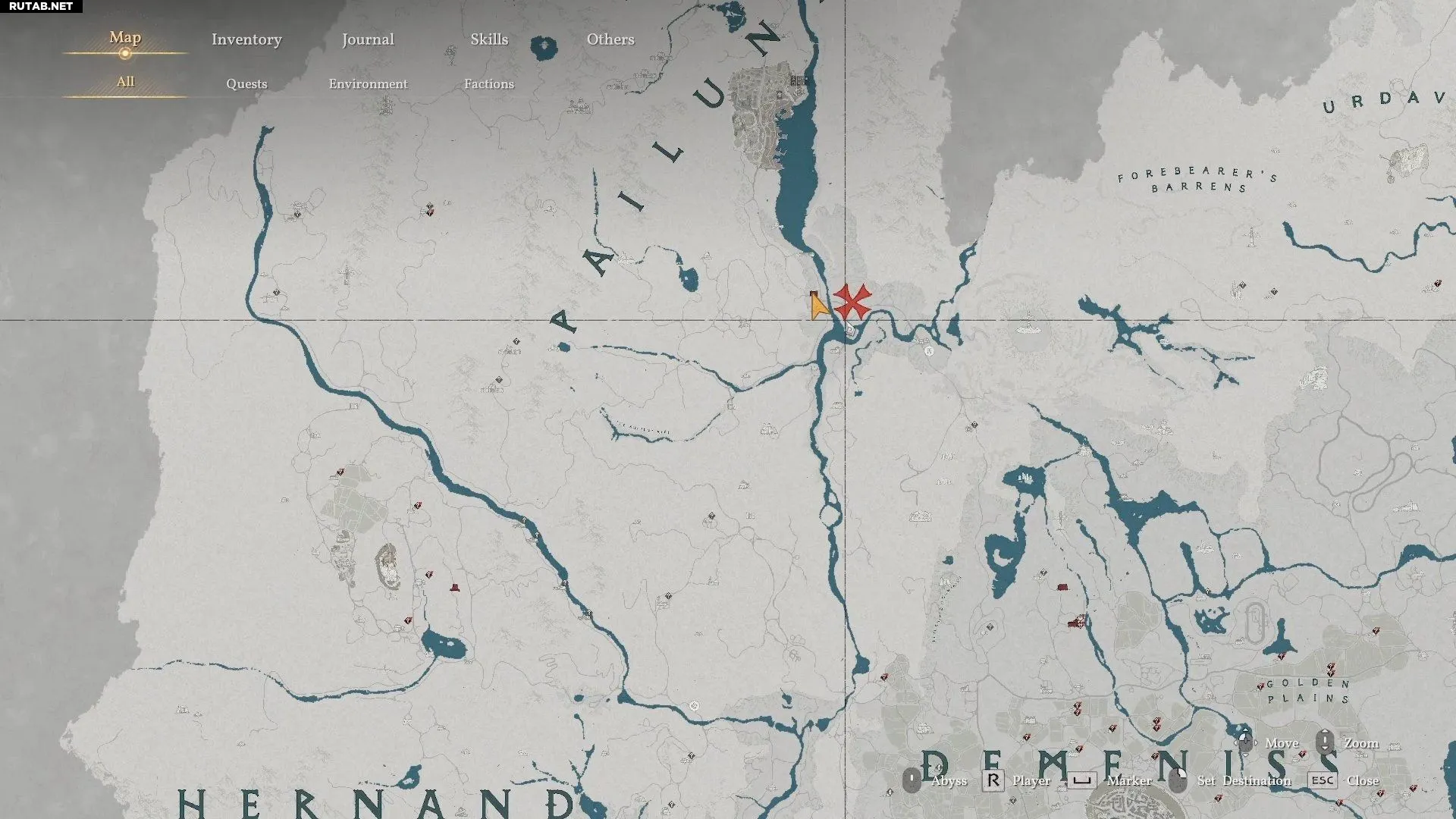 - Быстро переместитесь к Следу Бездны «Черная стена», который находится прямо к востоку от буквы «А» в названии Пайлуна на карте.