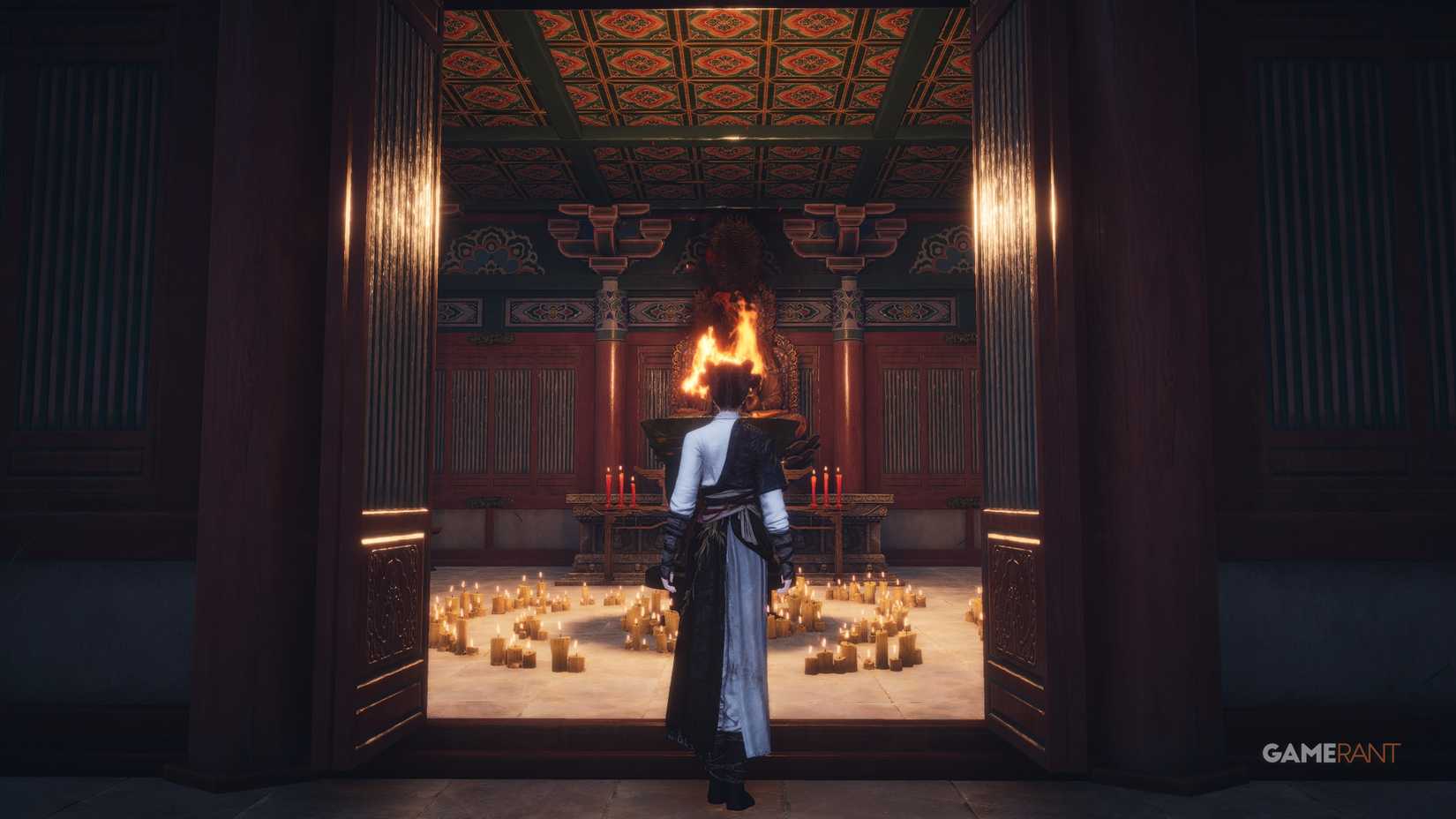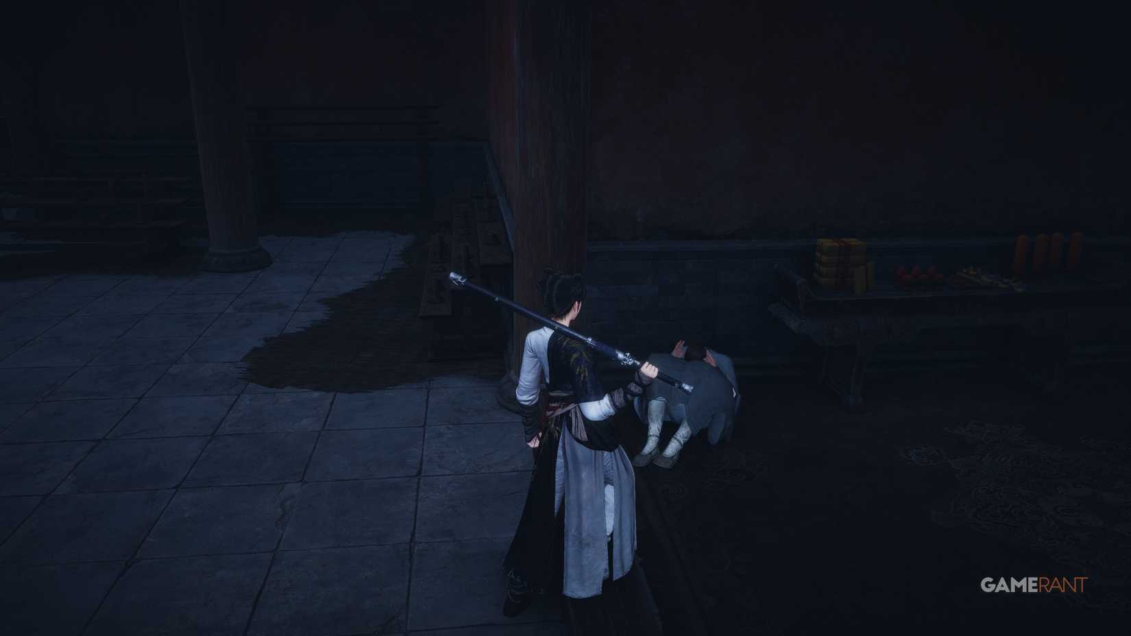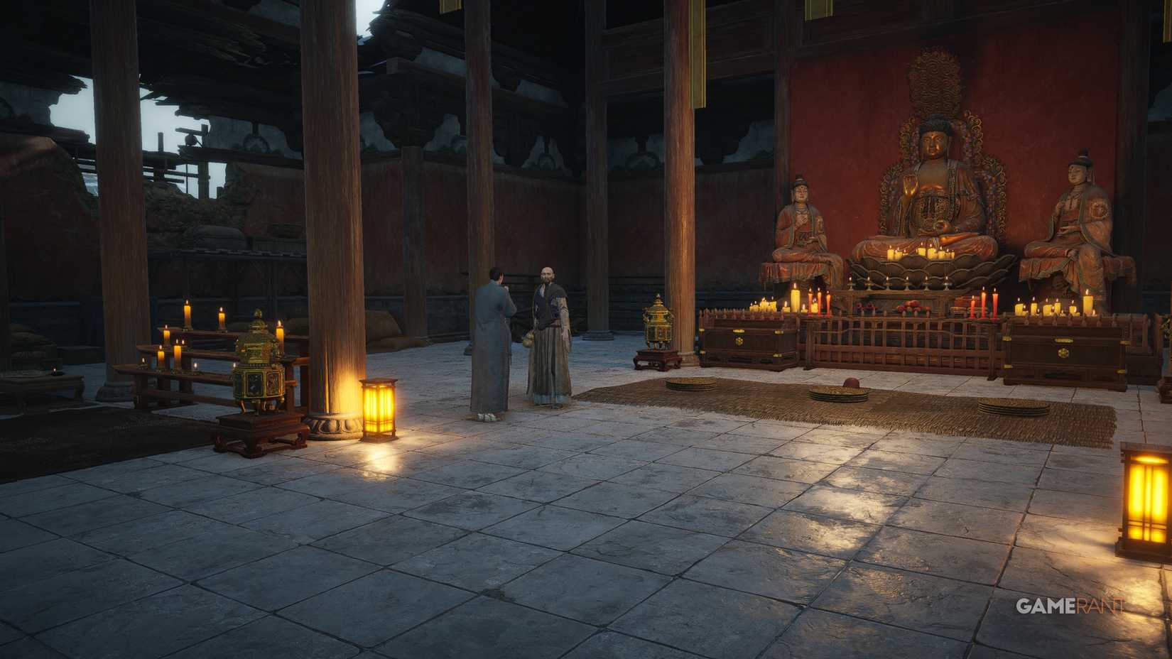 Оставайтесь внутри храма для этой «Истории». Поговорите с NPC Цзинцянь, чтобы узнать, что с ним случилось и почему он в храме. Этого NPC можно увидеть только в поздние ночные часы (Цзы).