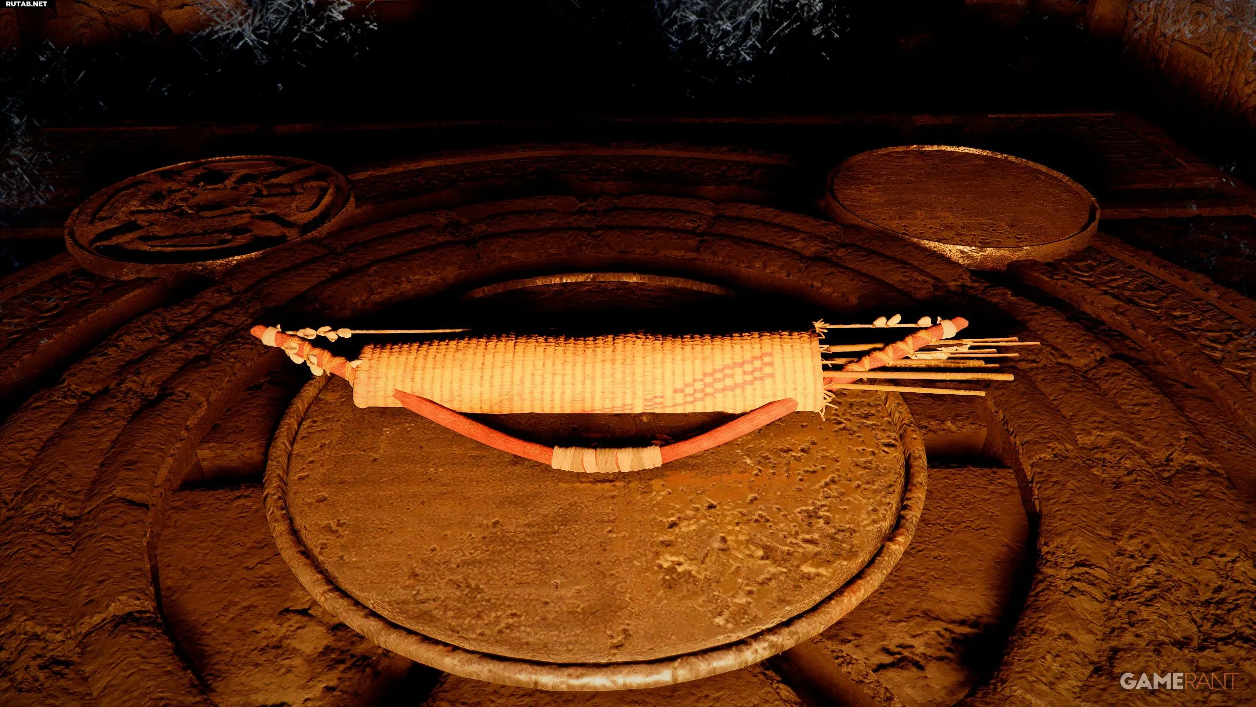 - Просто подойдите к двери, чтобы открыть ее. Внутри на полу вас ждет награда — Золотой узловатый лук предков.