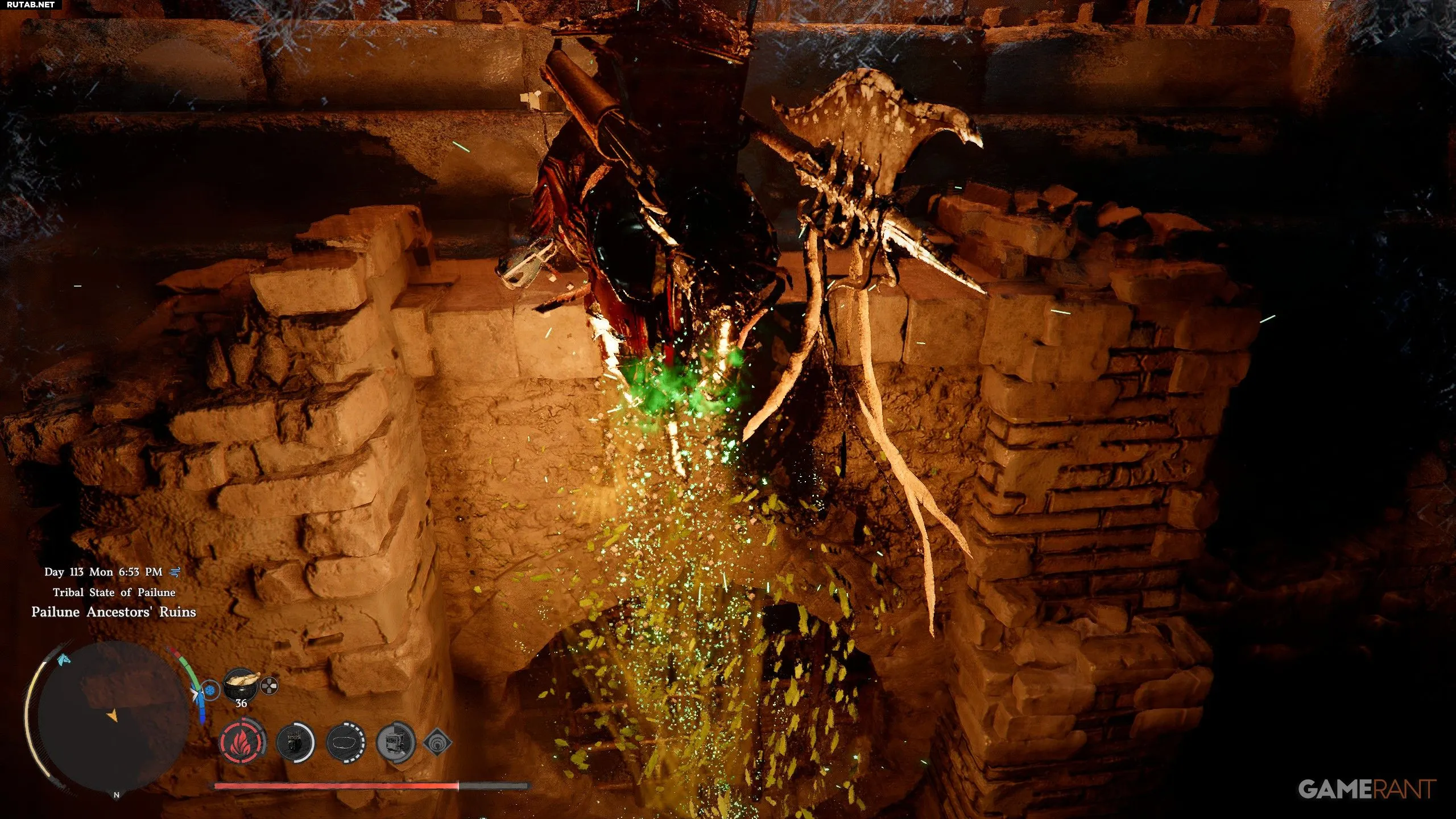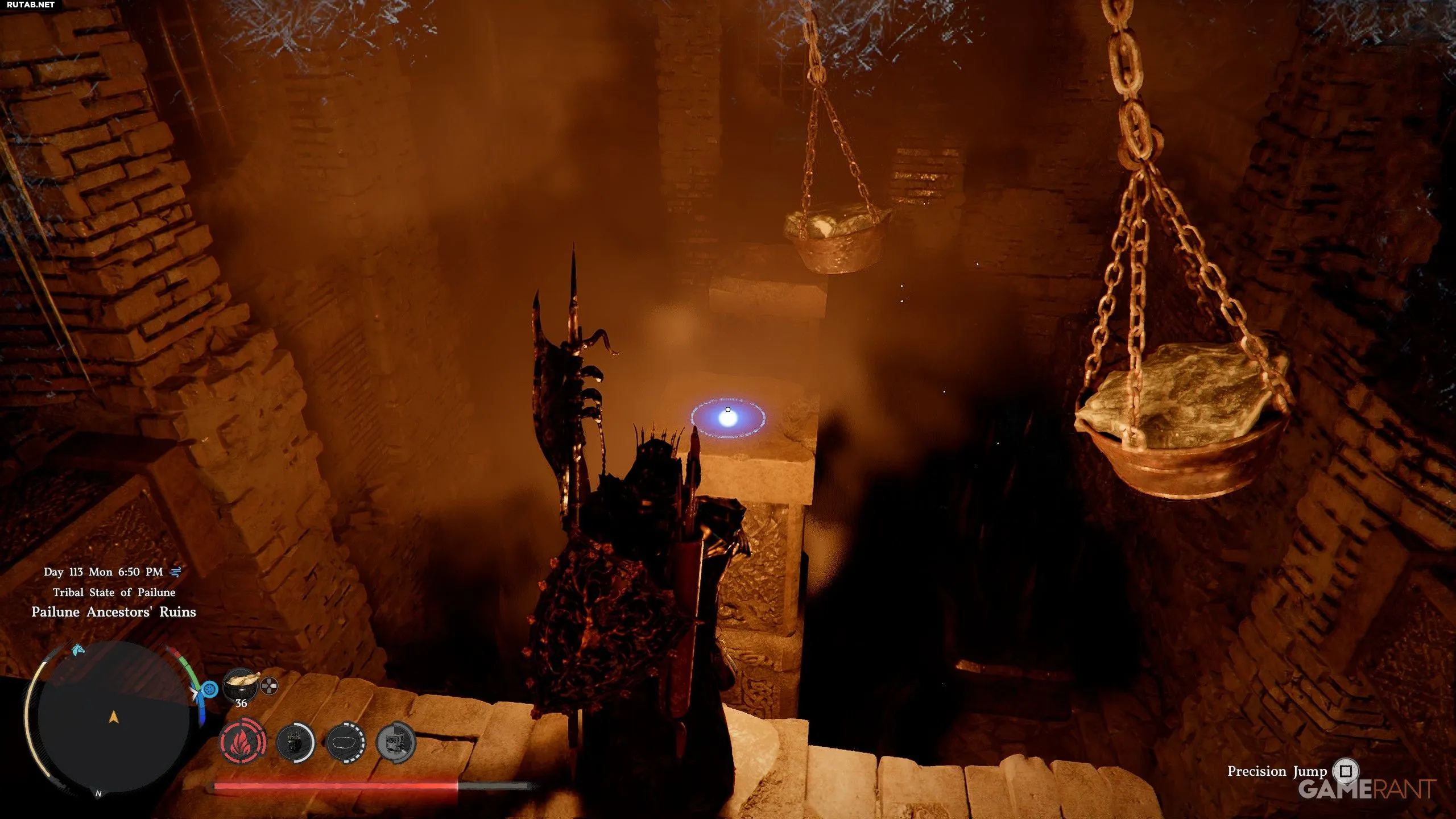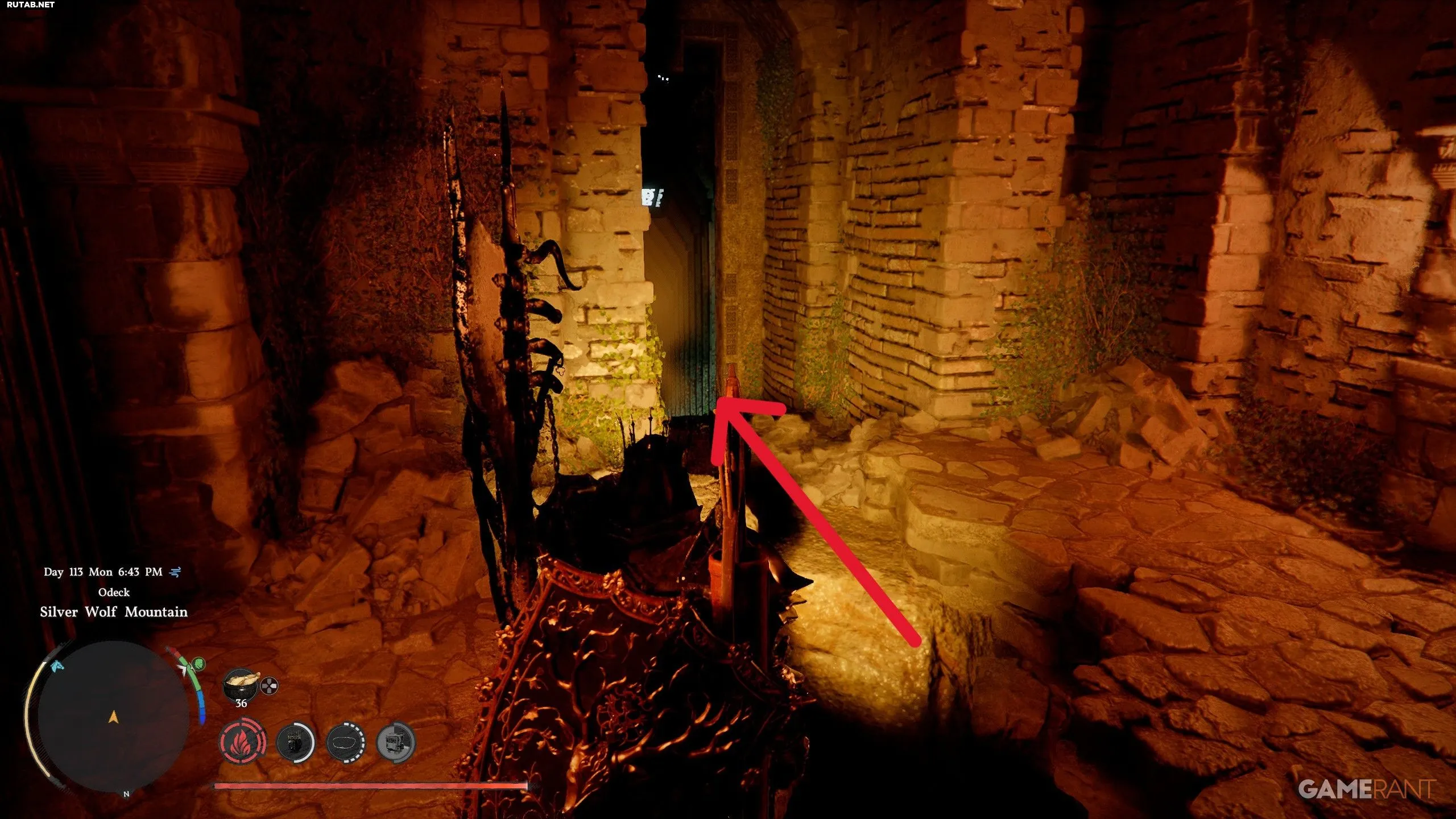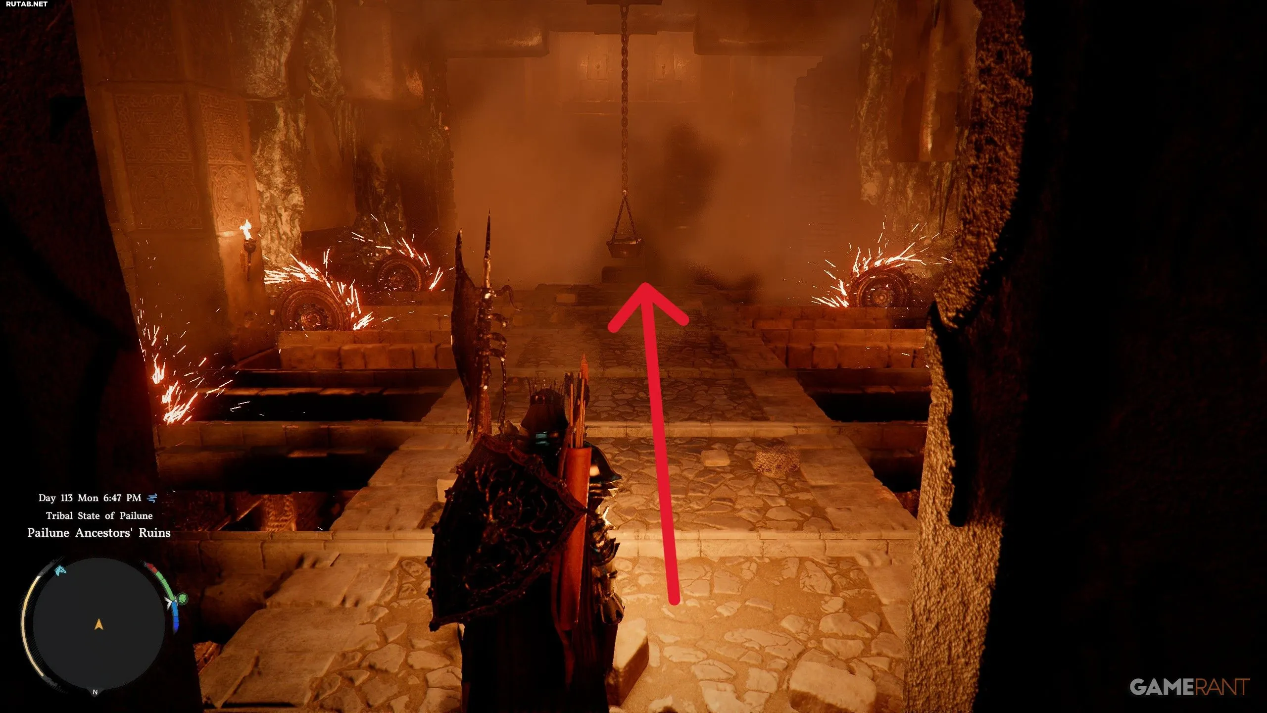 - Спустившись по лестнице, вы попадете в руины. Будьте осторожны — это место заполнено ловушками.