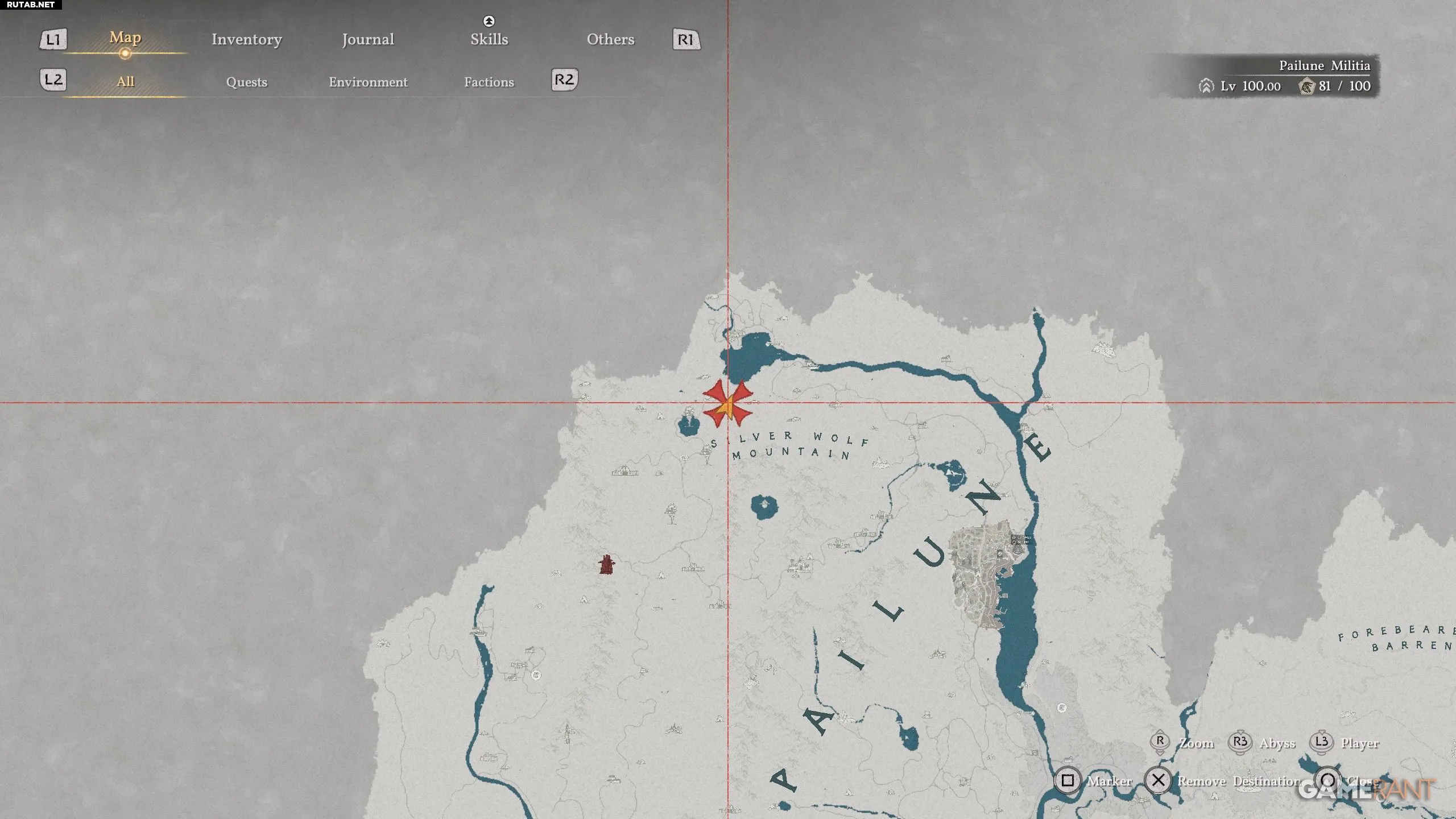 - Лук находится внутри Руин предков Пайлуна, к северу от первой буквы "i" в названии локации «Гора Серебряного Волка».