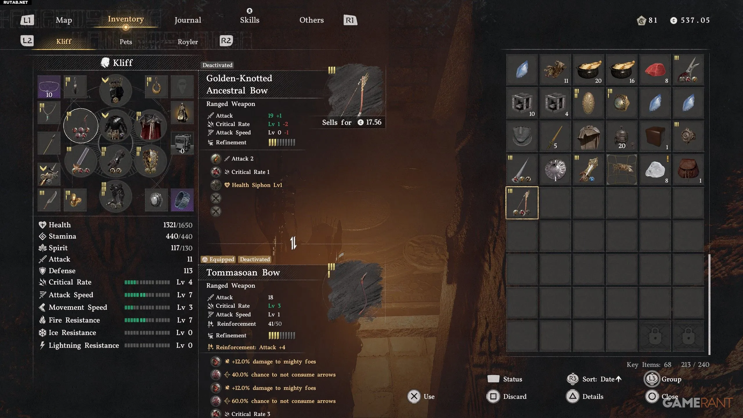 - Полностью улучшенный лук будет иметь атаку 35 и шанс критического попадания 1 уровня.