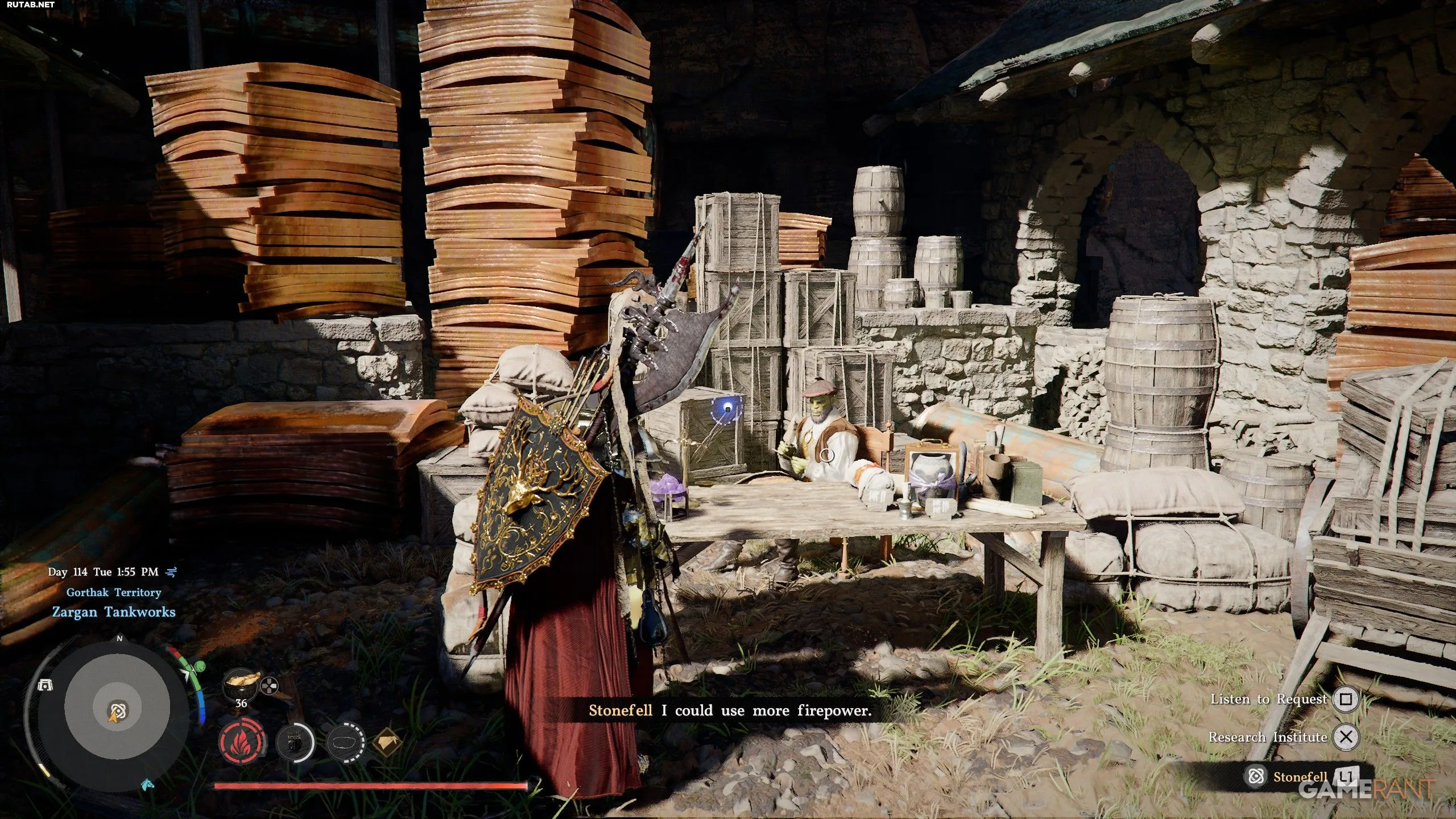 - Когда производство встанет, отправляйтесь на склад Гортхака (показан на первом изображении выше).