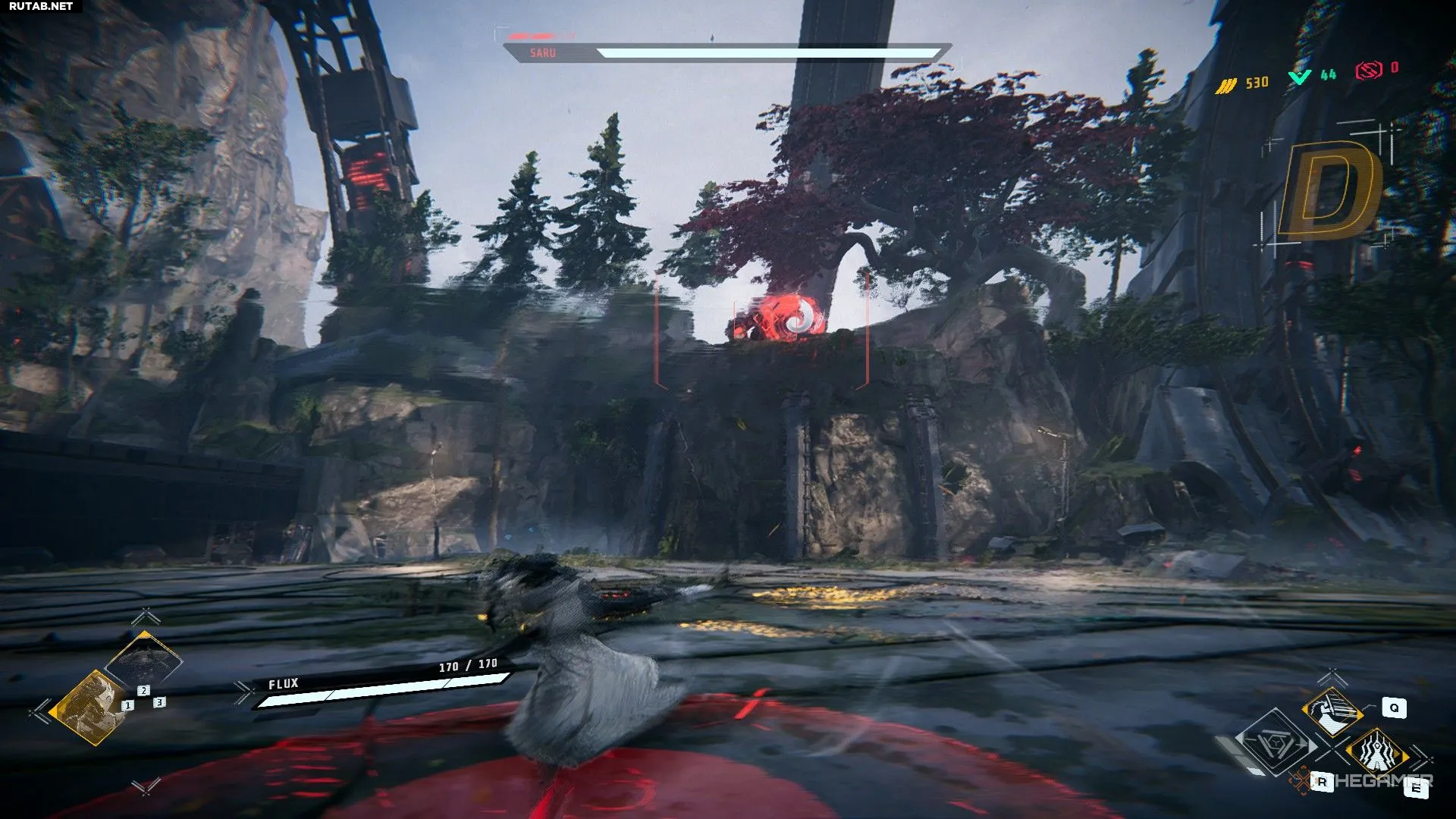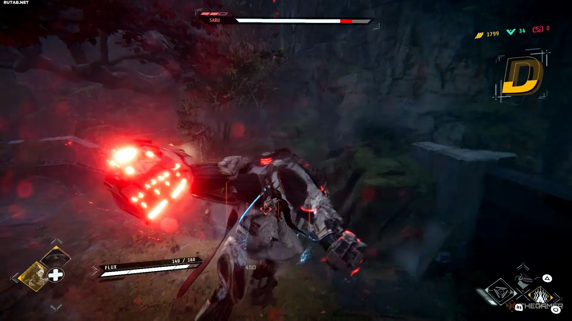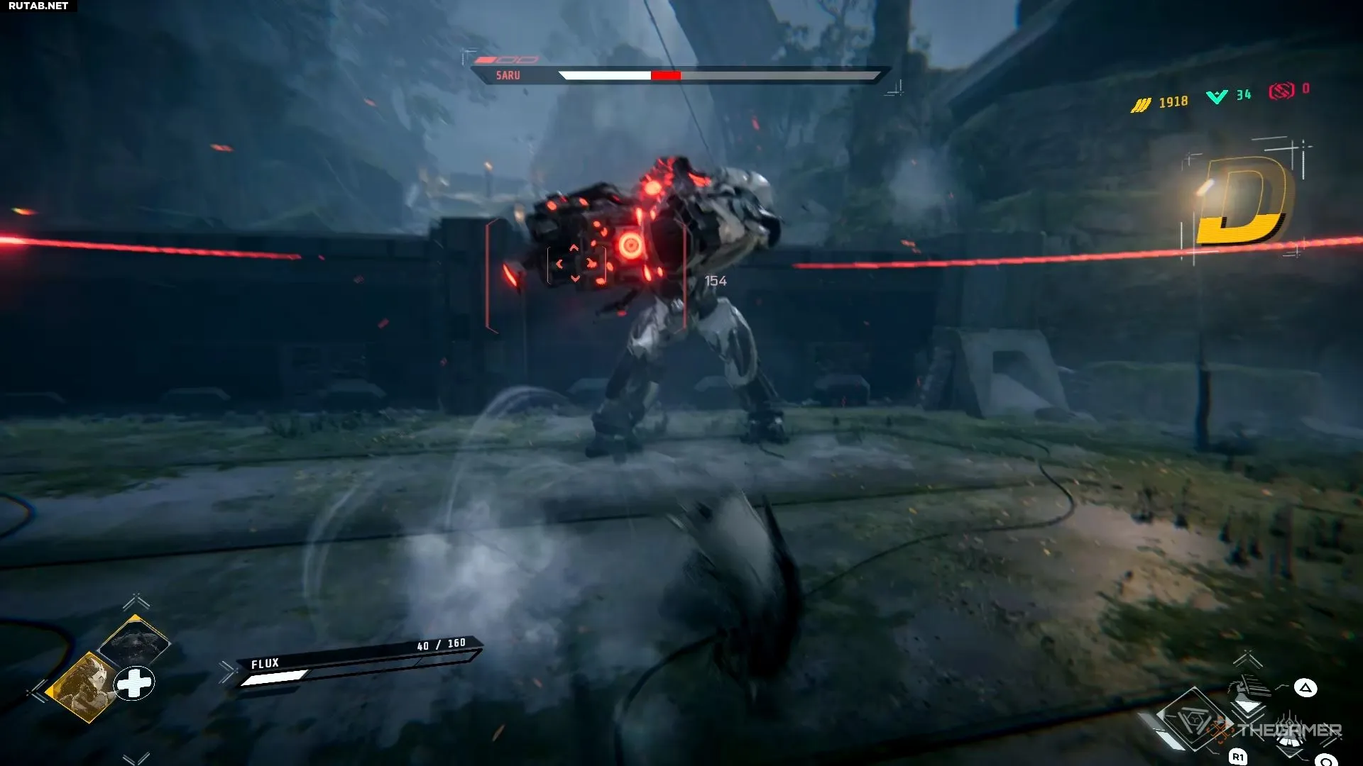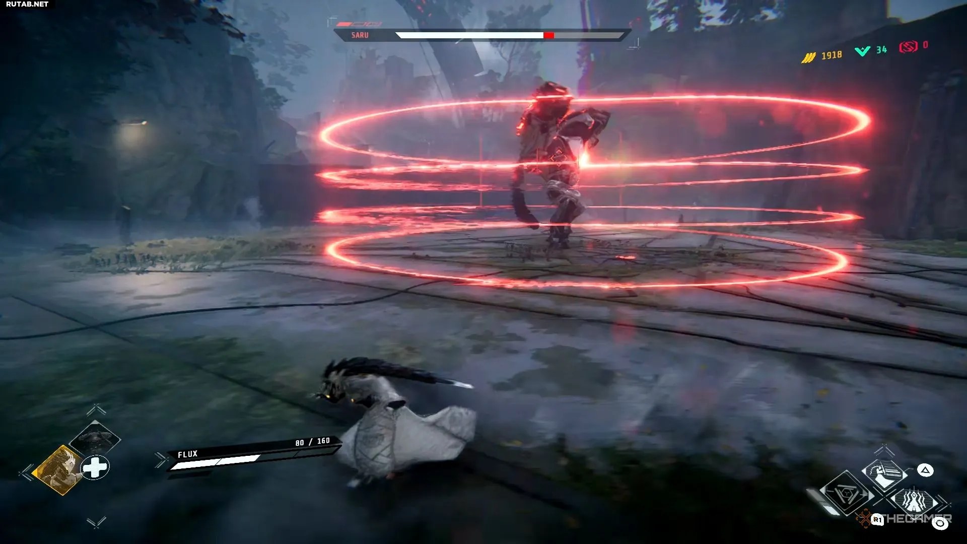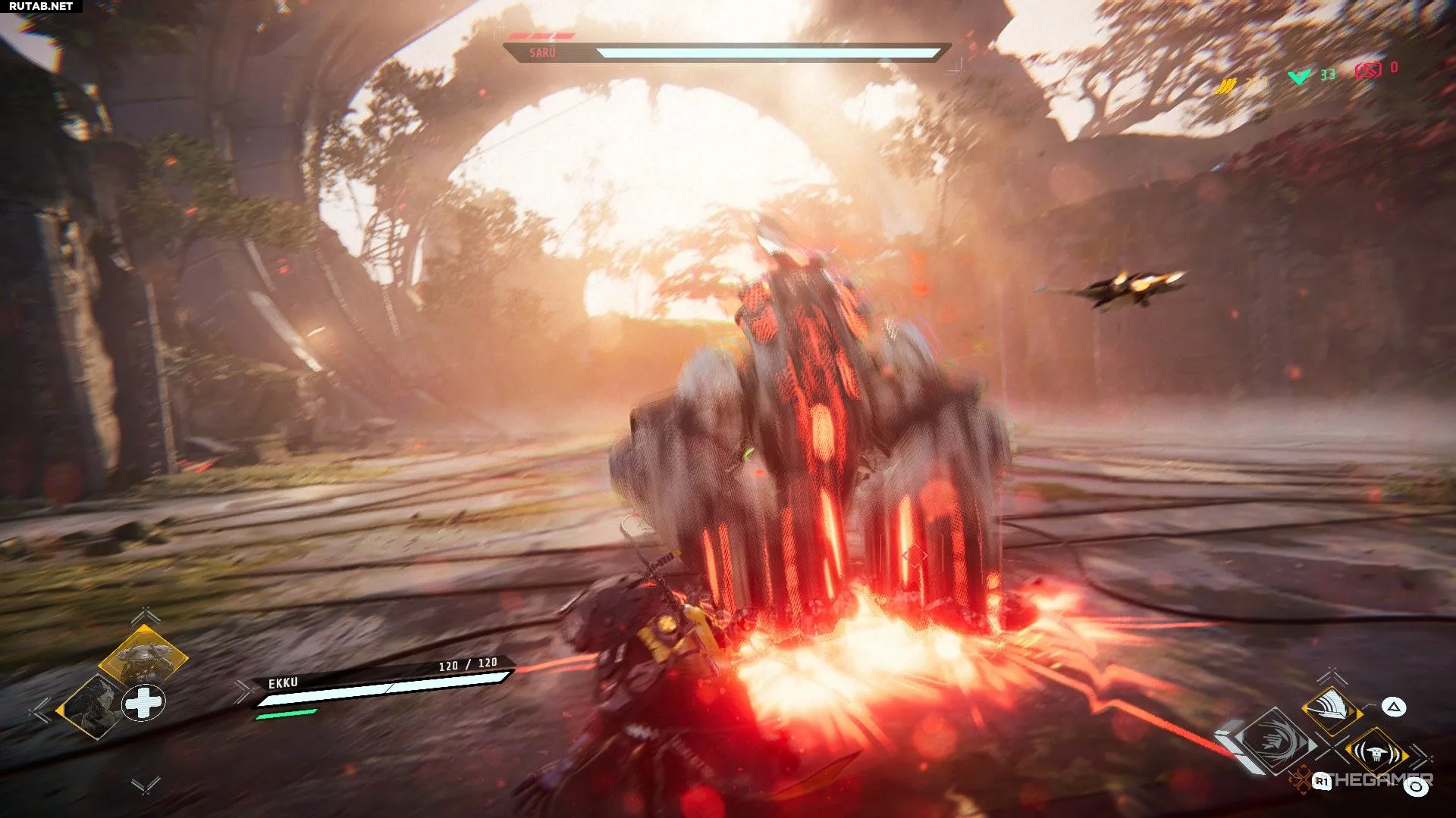 Сару будет использовать комбо ударов из первой фазы, а также смешивать его с ударом кулаком в землю и ударной волной. Одна вещь, на которую стоит обратить внимание: когда он заряжает свое тело, из него выйдут три лазерных луча, и вам нужно будет нажать на уворот, чтобы избежать их.