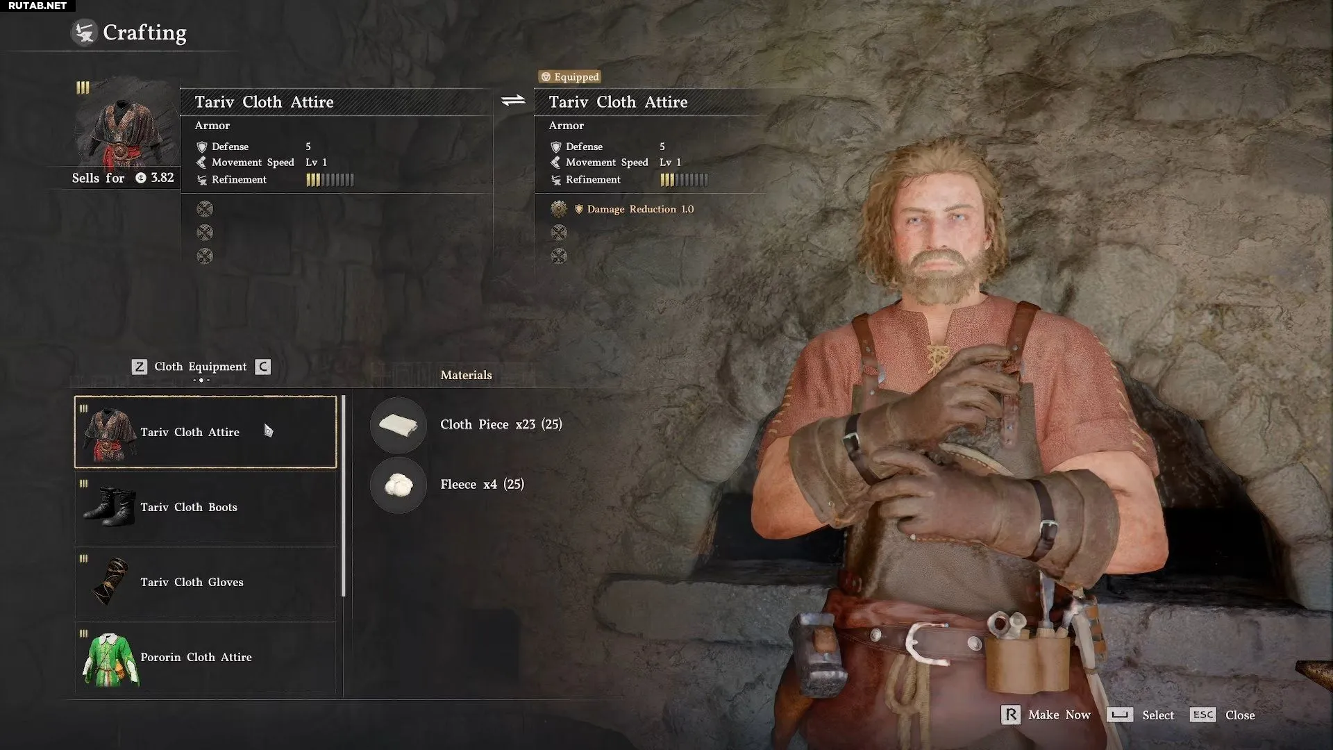 В Crimson Desert игроки могут приобрести тканевый доспех Тарива в портняжной мастерской одноимённого городка, расположенного к северу от Деменисса. Однако владелица магазина, Элайджа, по умолчанию продаёт только перчатки и плащ. Оставшиеся части комплекта — обувь и нагрудник — появляются в продаже только после максимального повышения уровня доверия с ней.