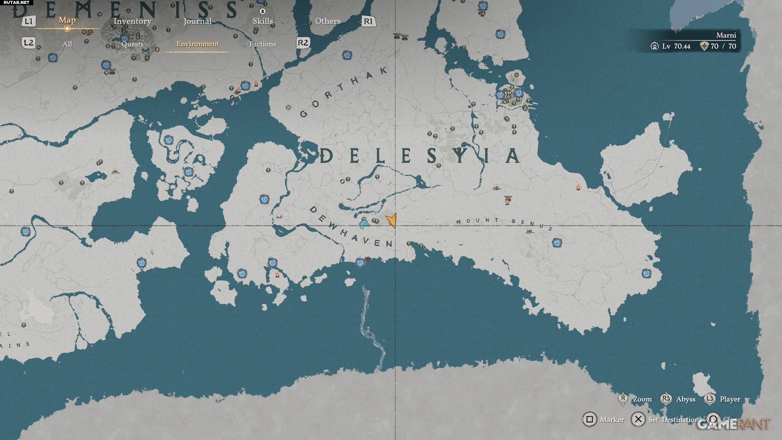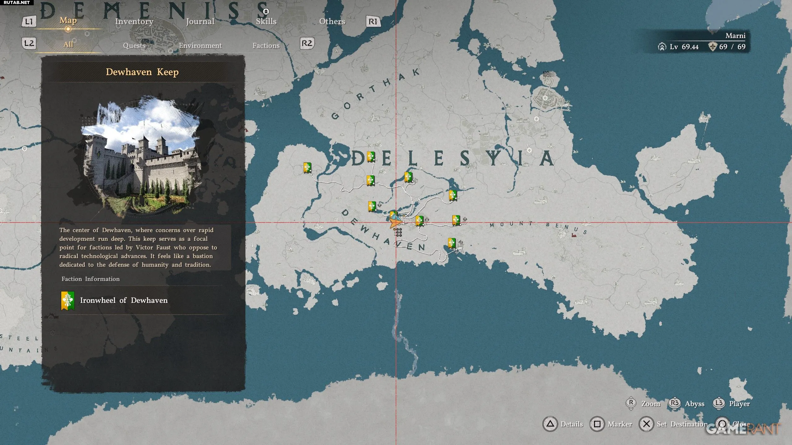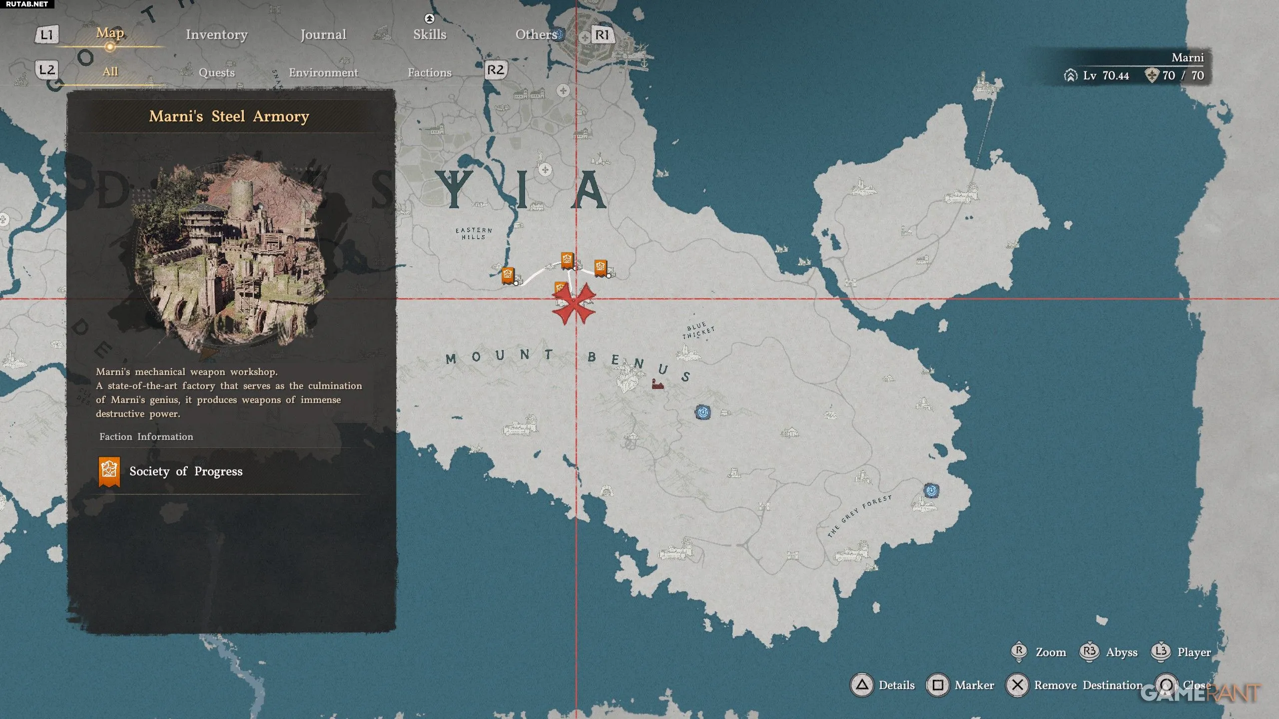 - На карте наведитесь на «Стальной арсенал Марни», нажмите Triangle/Y и перейдите на вкладку «Список заданий» с помощью R1/RB.