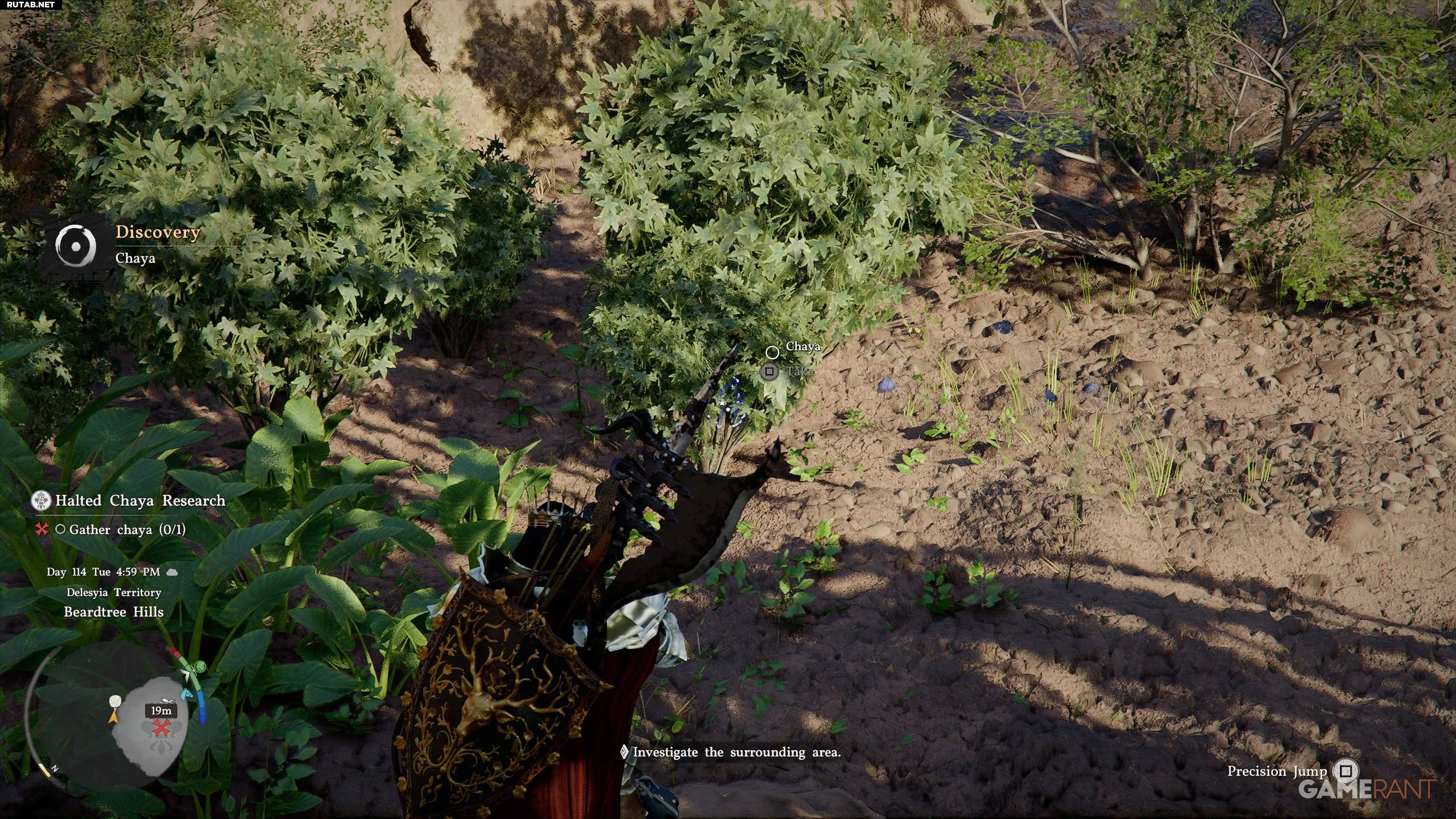 - Вам нужно будет собрать 1 единицу чайи, которую можно найти в районе «Бородатых холмов» (область на карте выше). Альтернативно, можно купить семена чайи у бакалейщика в городе Пайлун и вырастить её в саду своего лагеря.