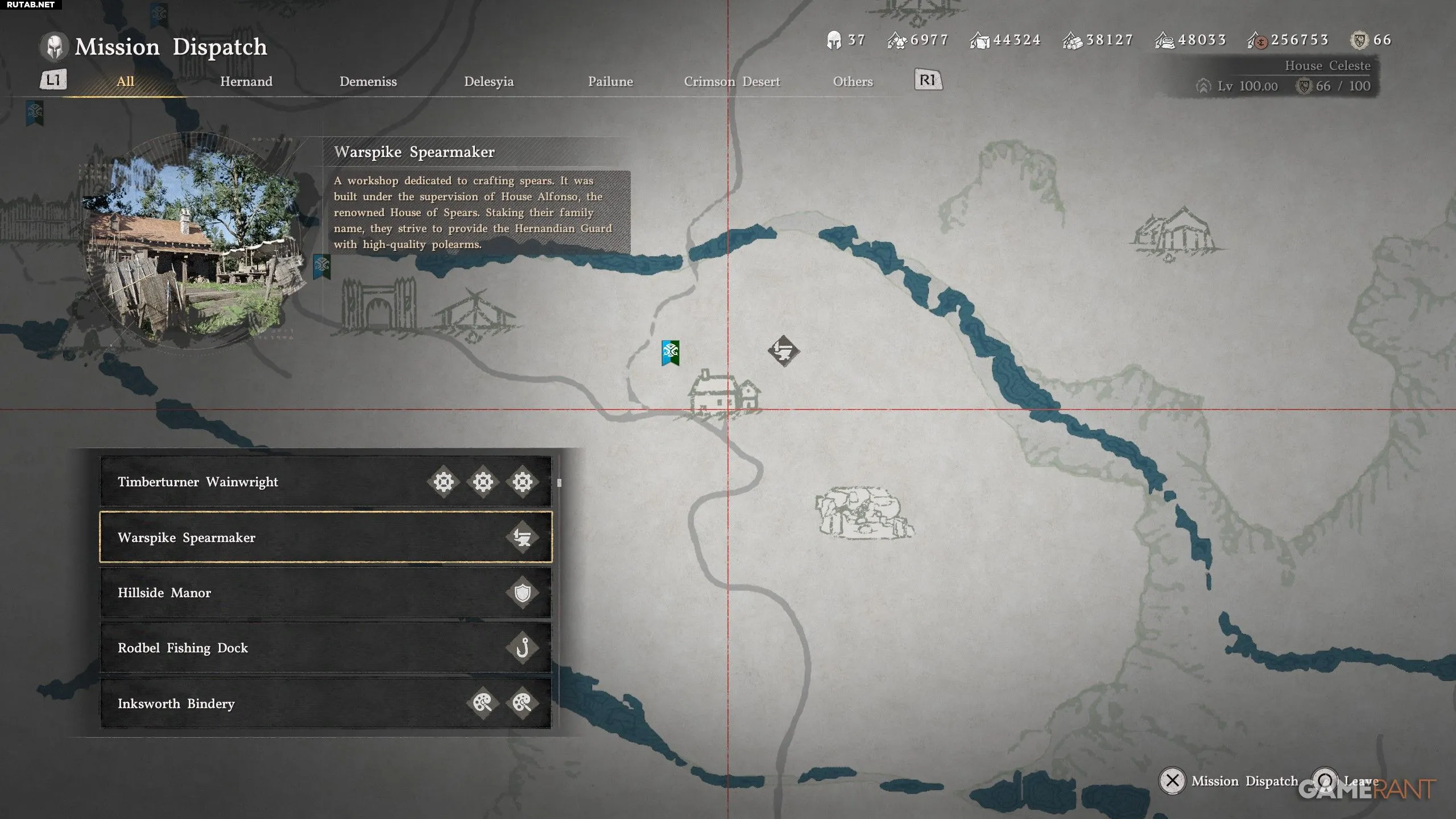 - Выберите «Отправка на задание» (Mission Dispatch) и активируйте задание «Копейщик Воинственного Шипа» (Warspike Spearmaker) в регионе Эрнанд.