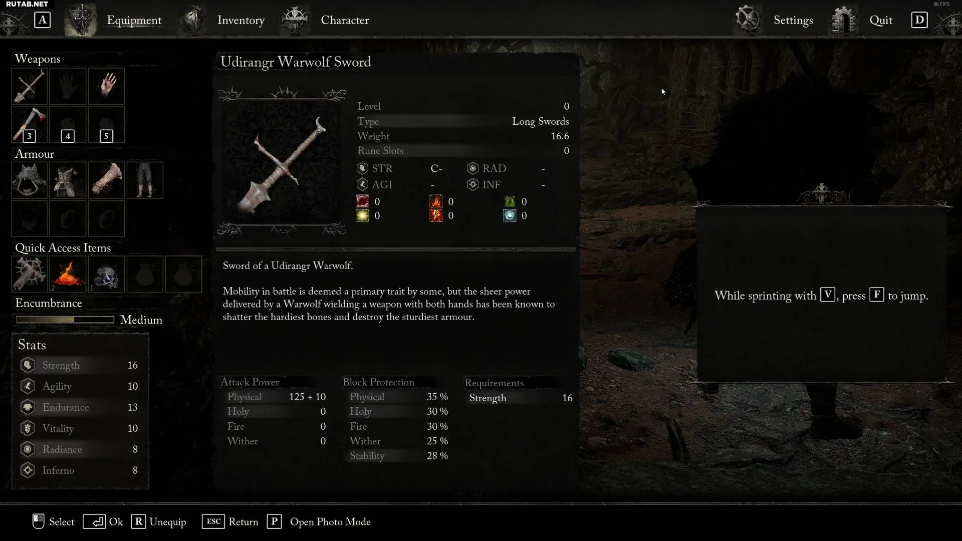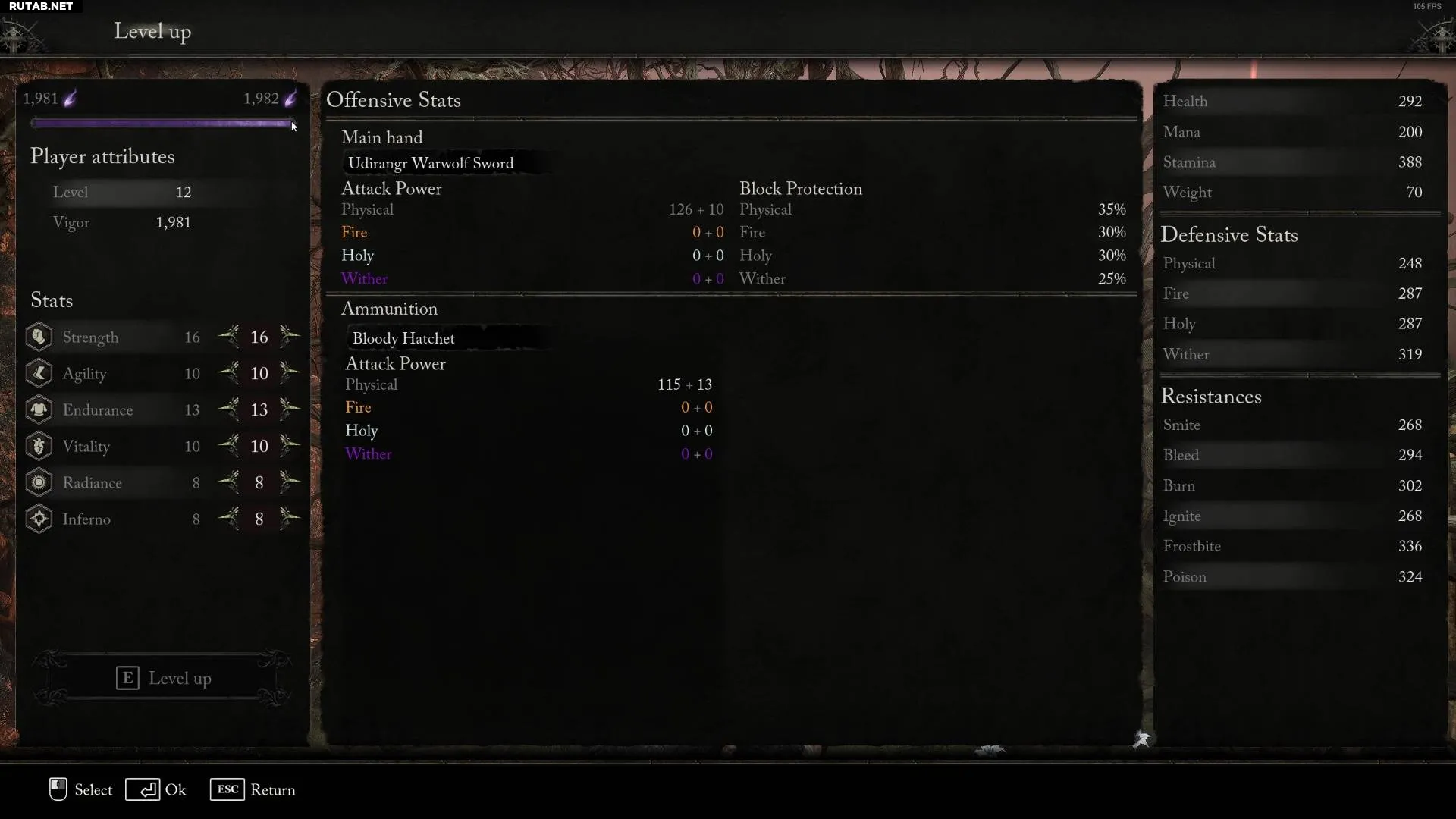 Важно помнить, что нужно соотносить прокачиваемые характеристики с теми, к которым лучше всего приспособлено ваше оружие. При осмотре оружия рядом с некоторыми характеристиками будет указана буквенная оценка. Например, если вы выбрали класс «Удирангрский Волк-воин», ваше стартовое оружие будет иметь оценку C- по Силе. Это указывает на то, что для повышения мастерства владения этим оружием стоит вкладываться в Силу. Соответственно, при поиске нового оружия стоит отдавать предпочтение тому, что ориентировано на Силу.