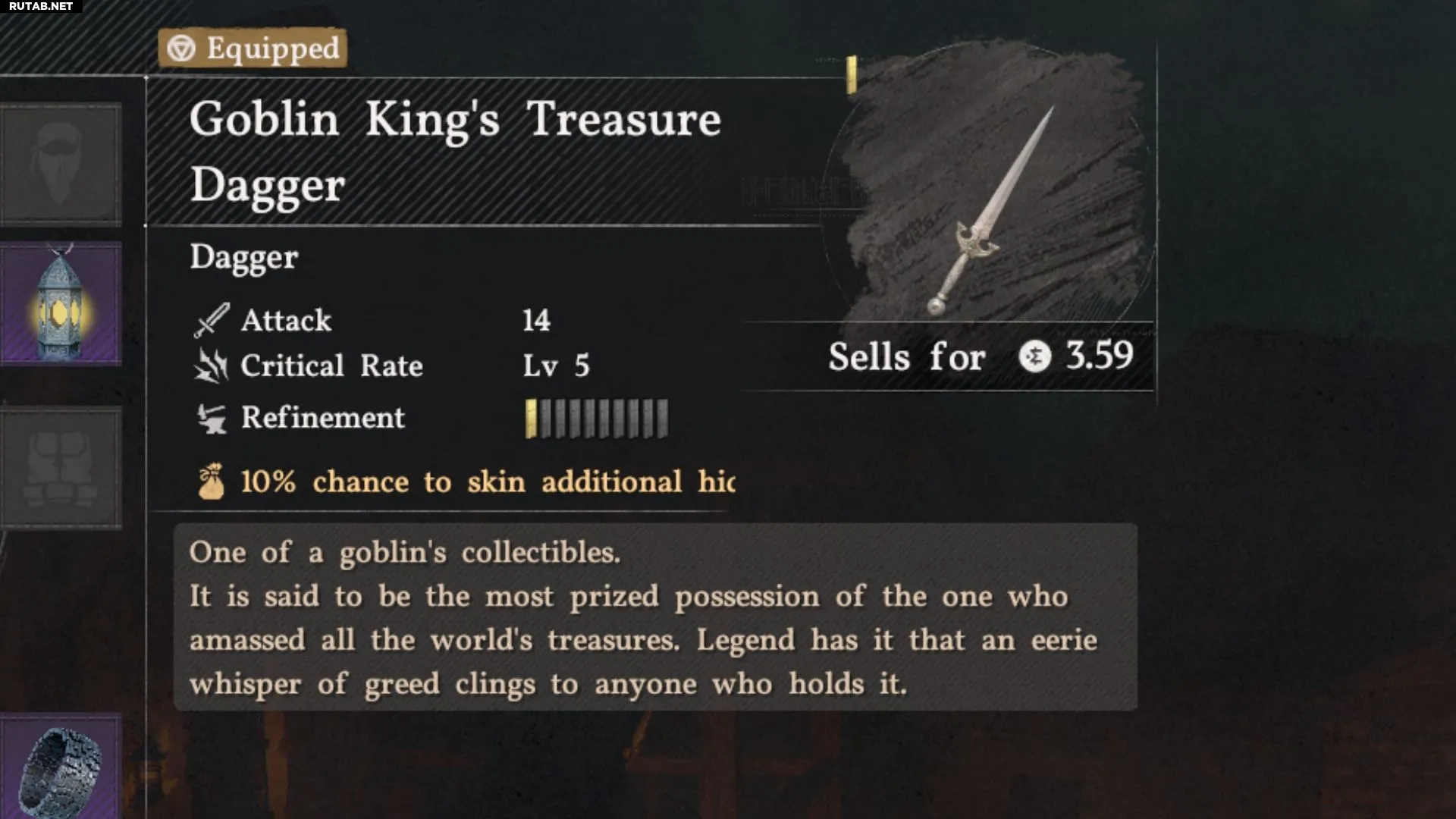 Кинжалы в Crimson Desert редко используются в прямом бою, выполняя скорее вспомогательную роль. Поэтому уникальное свойство этого кинжала — 10% шанс получить дополнительную шкуру при свежевании животного — является крайне полезным улучшением, выделяющим его среди другого оружия этого типа. Это уникальный кинжал, и его способность является врождённой, а не полученной от Снаряжения Бездны.