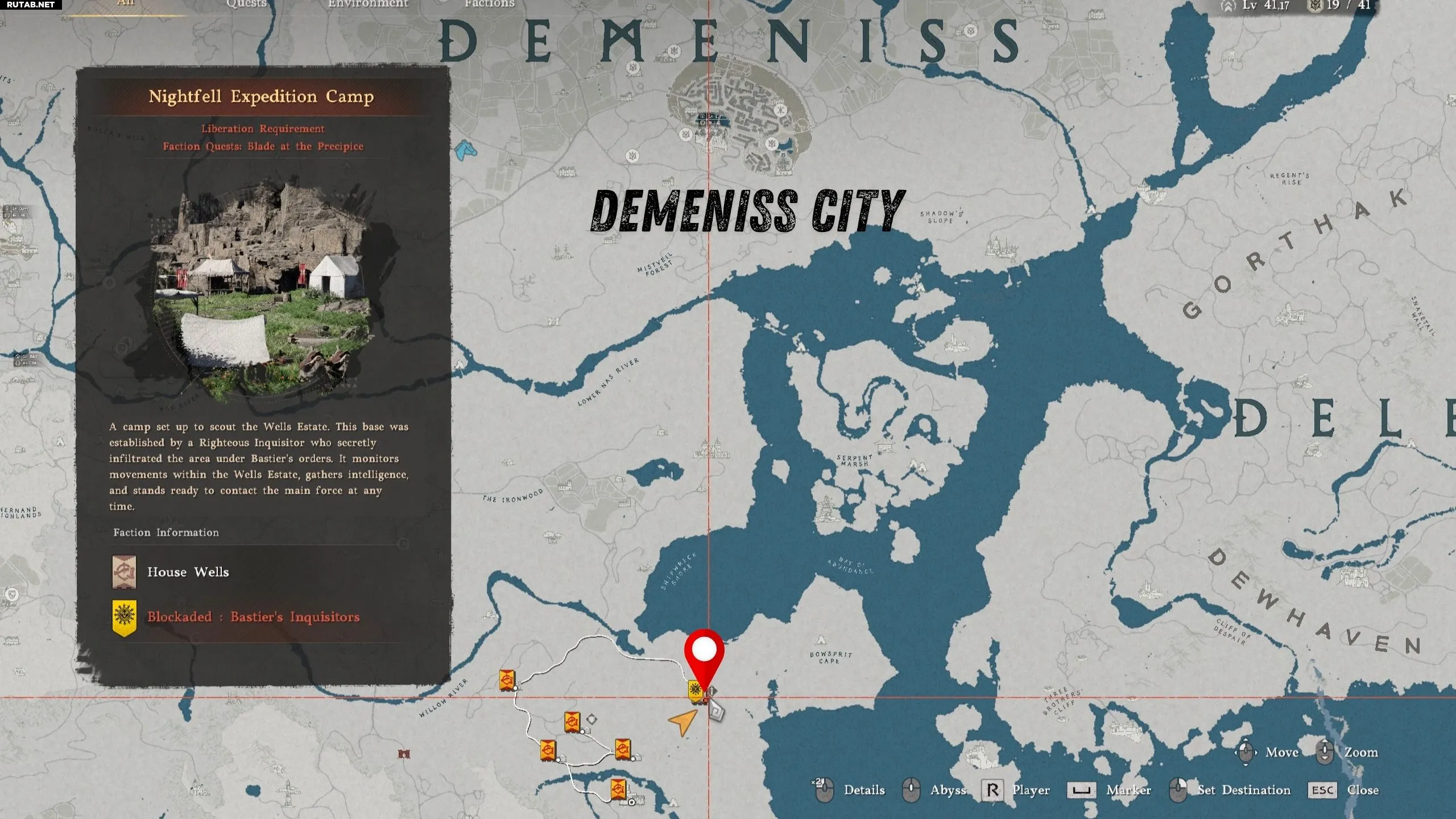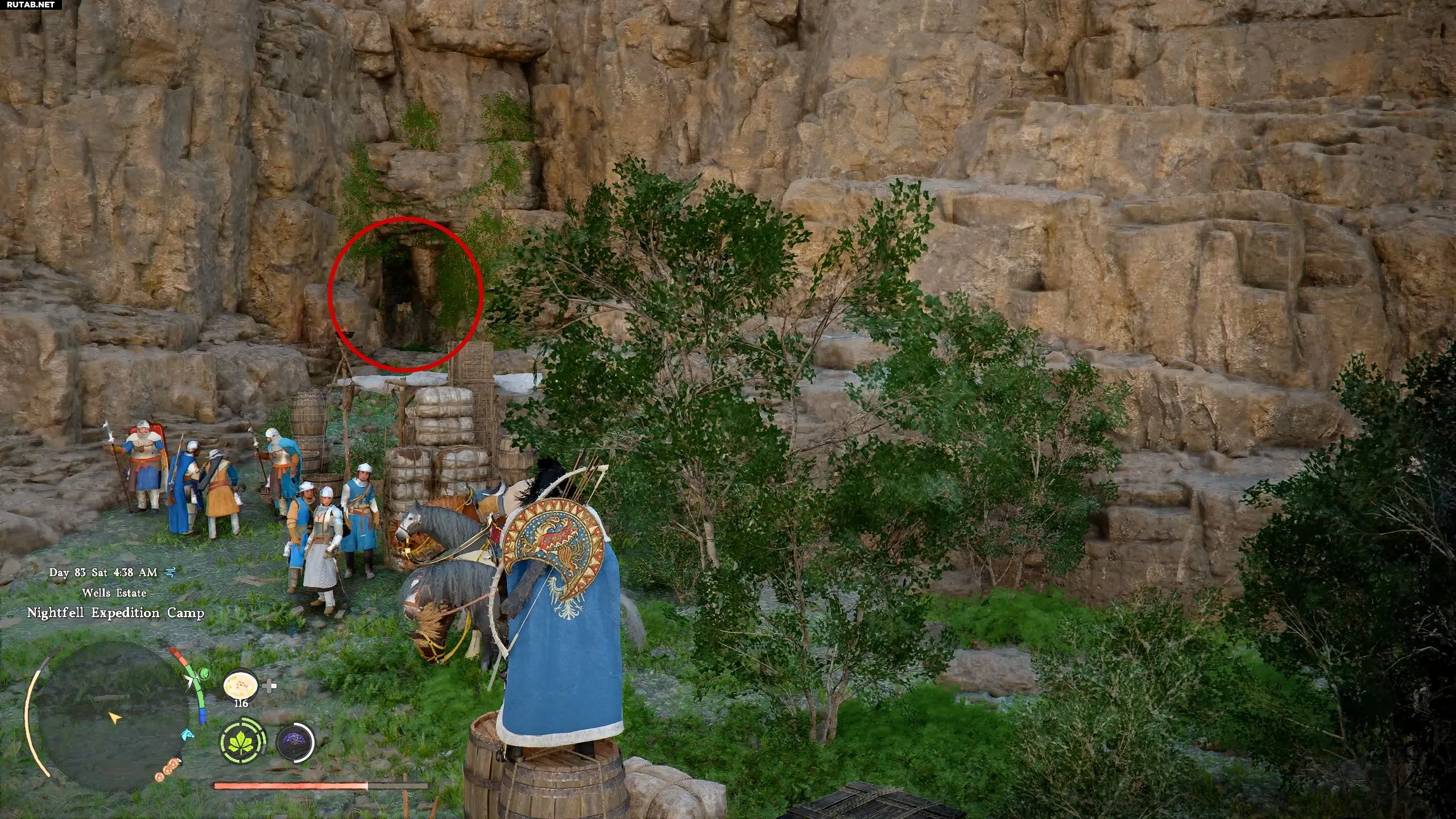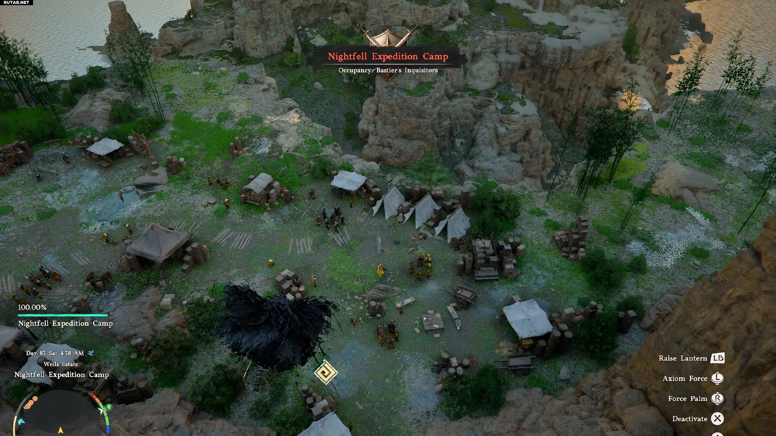Лагерь занят фракцией «Инквизиторы Бастьера», и сражение с ними может быть сложным, если ваше снаряжение слабое. Хотя у вас есть возможность сразиться и освободить лагерь, вы можете сразу направиться в пещеру — враги не последуют за вами внутрь.
