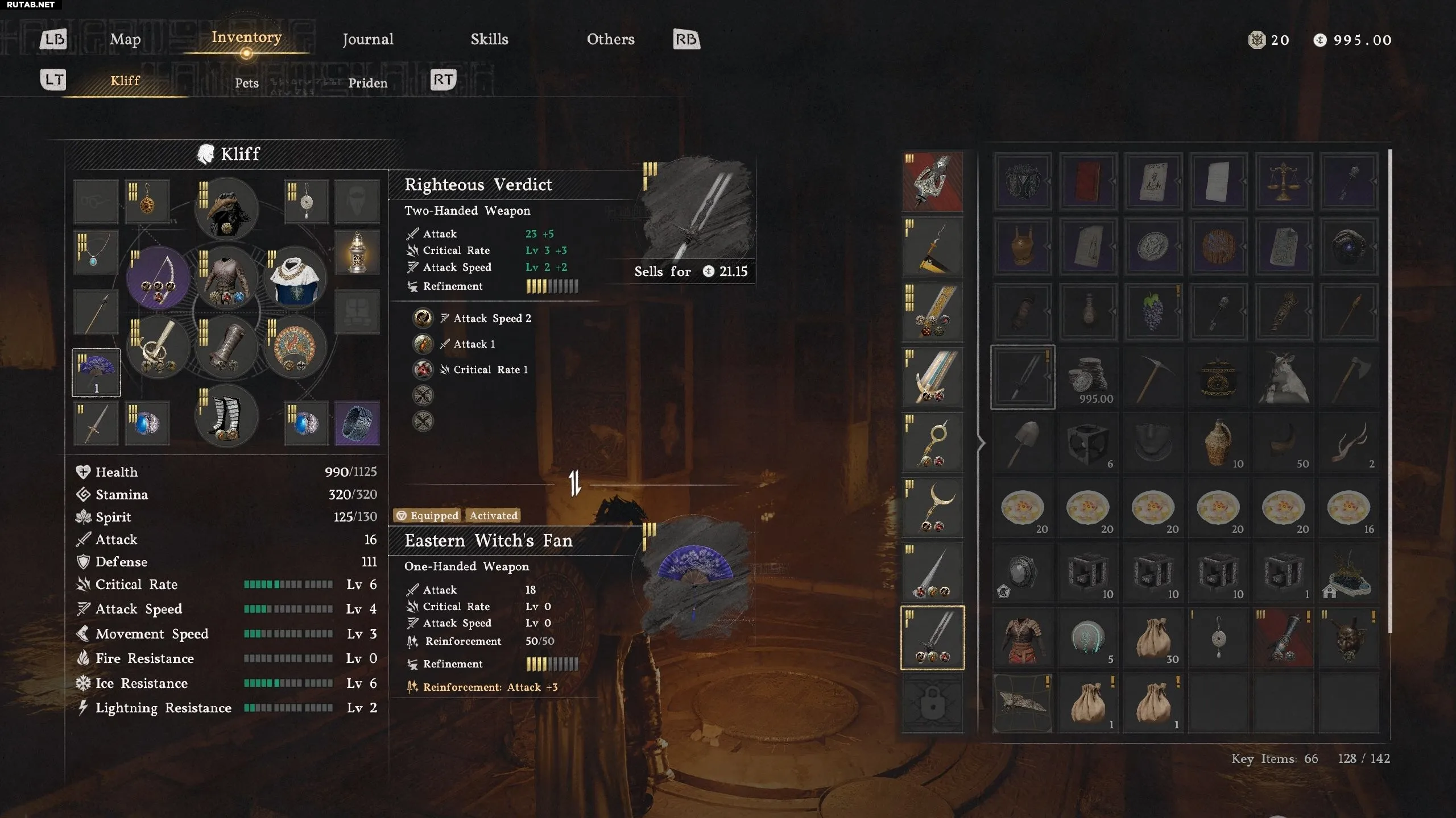 Меч Праведный вердикт в Crimson Desert уже улучшен до четвертого уровня и обладает высокими показателями атаки и шанса критического попадания. Однако вы можете дополнительно улучшить оружие, добавив несколько способностей из «Снаряжения Бездны», посетив Ведьму.